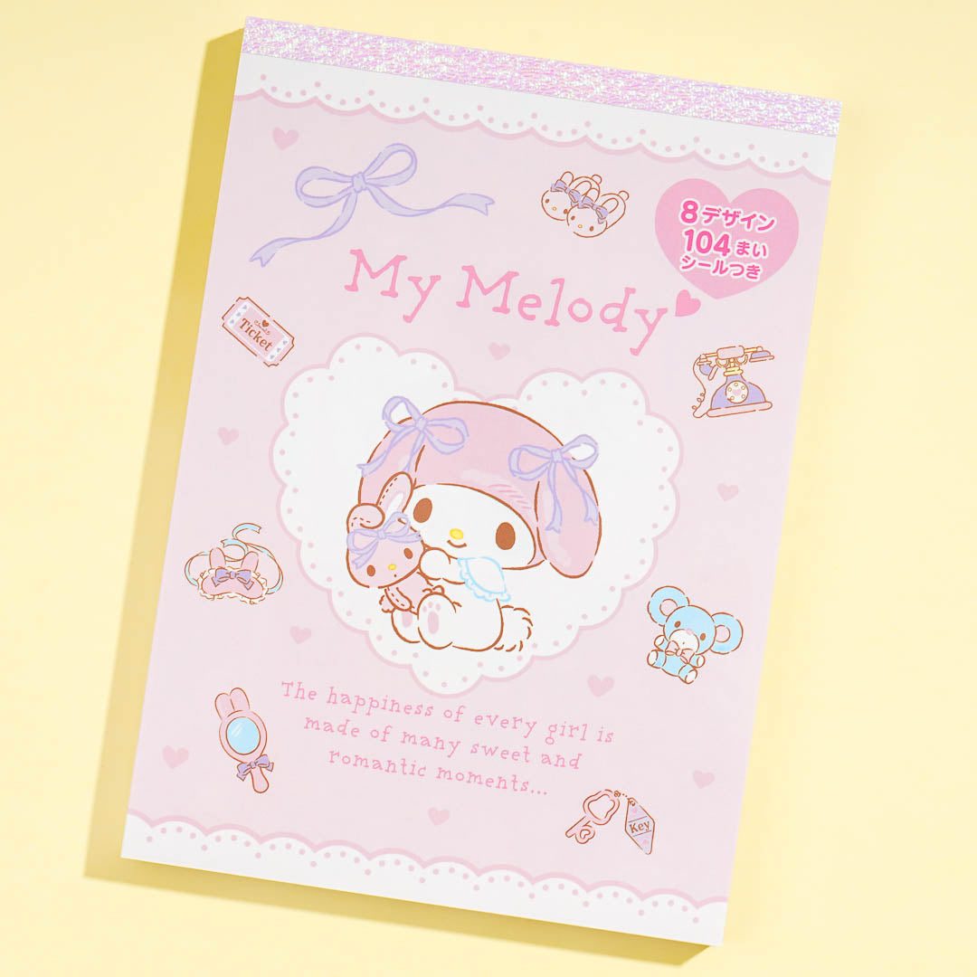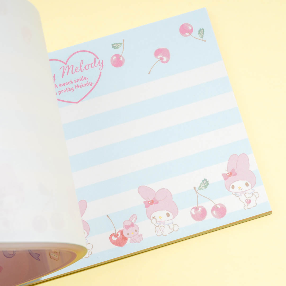 Add this super cute memo pad to your stationery collection. It showcases prints of My Melody happily playing around with dolls and other cute things! You can use this memo pad to write down important notes and reminders.