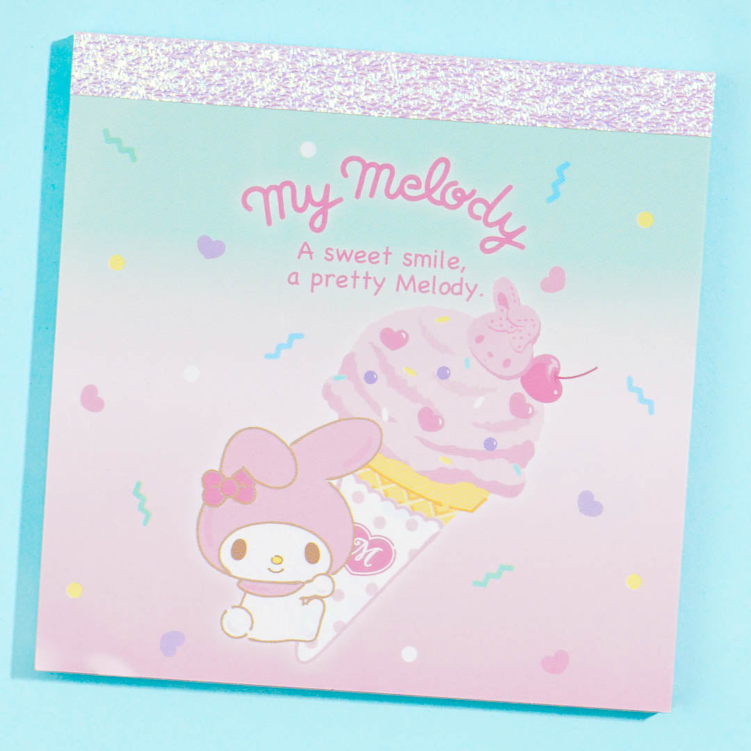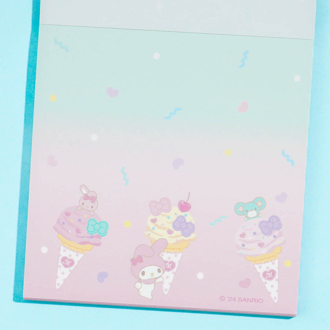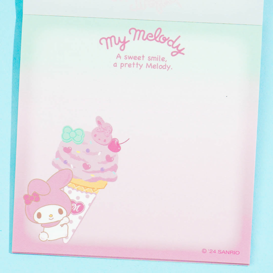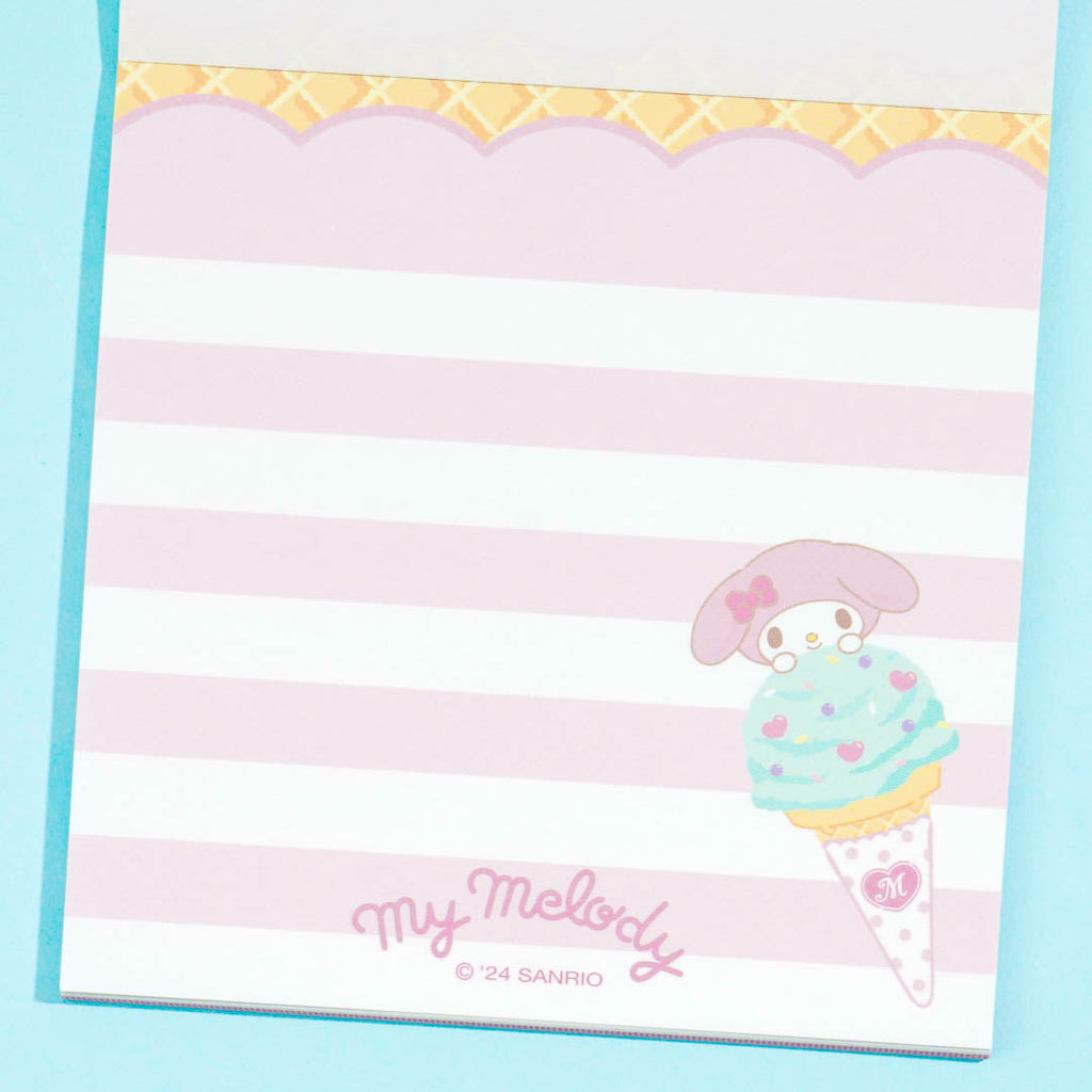 Make sure to keep track of the things you need to do by writing down reminders on this kawaii memo pad. It's illustrated with My Melody latching on to a giant ice cream cone! This memo pad is the perfect addition to your stationery collection.