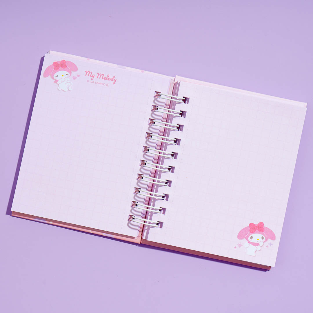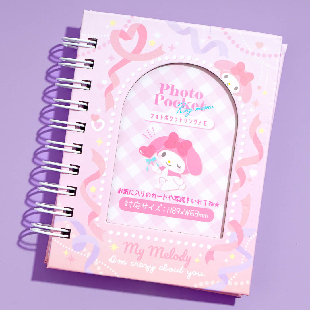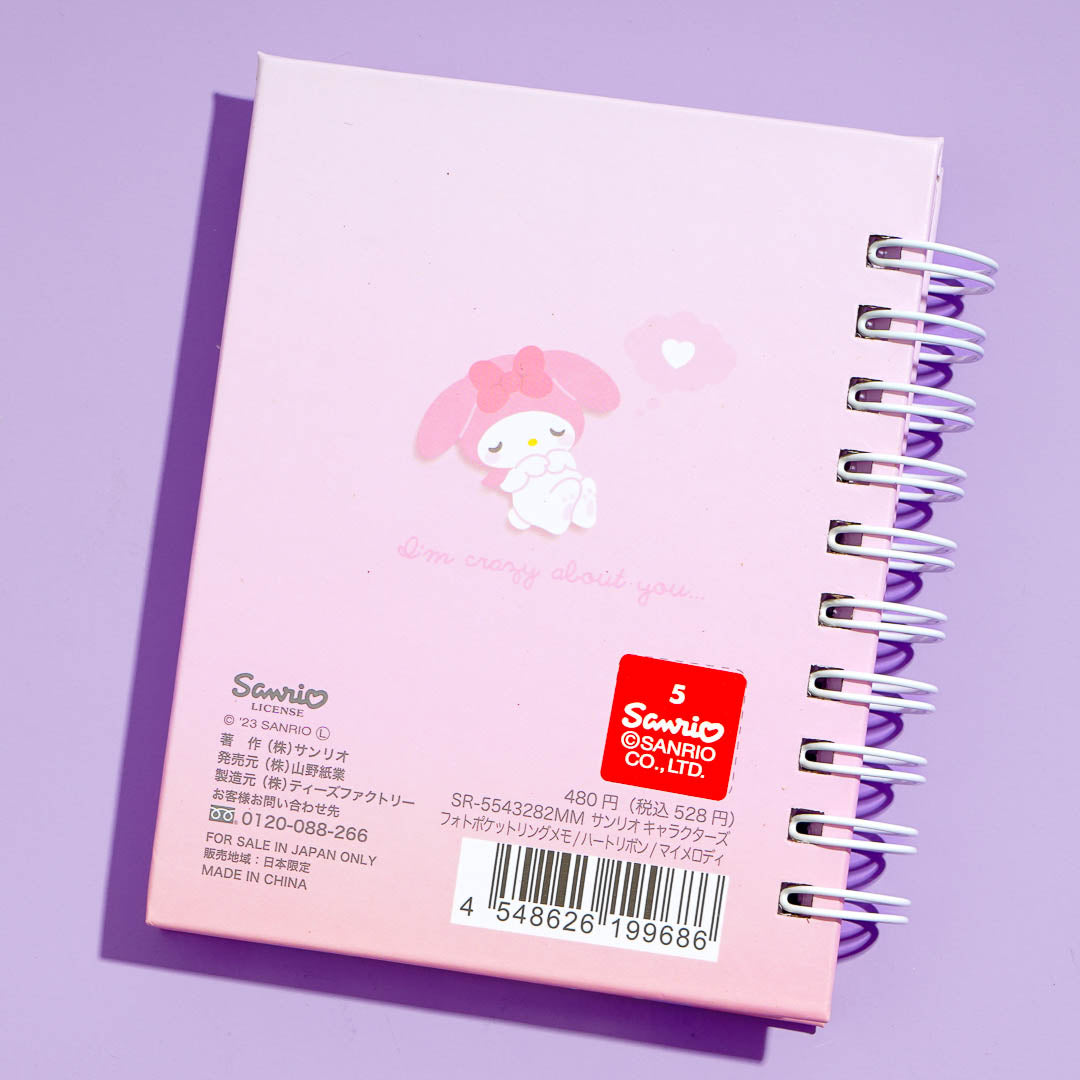 This kawaii ring notepad showcases prints of My Melody and ribbons! Its cover has a transparent pocket where you can insert your own photo. Write down important notes on the colored sheets.