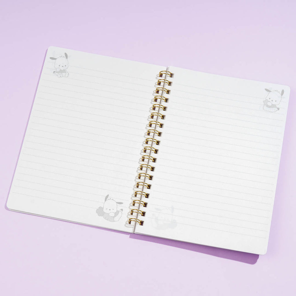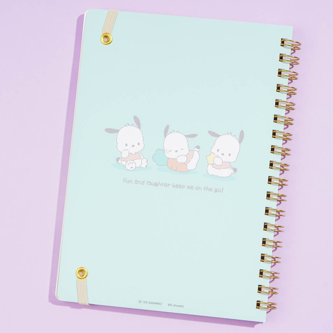 This kawaii B6 ring notebook is illustrated with Pochacco sitting down on his cute little butt. Use it to write stories and poems! It has a rubber band so you can keep the notebook closed.