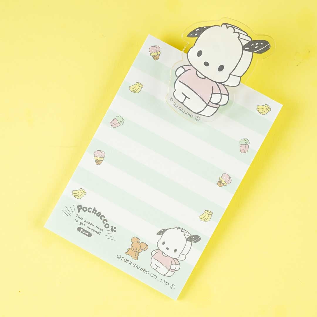 Jot down your important to-do list using this super cute memo pad featuring the sporty puppy, Pochacco! It comes with a die-cut Pochacco clip so you can securely fasten your memo sheets.