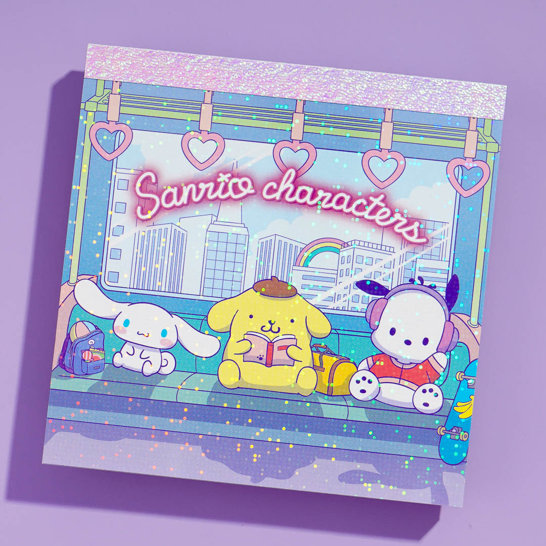 Have fun writing your notes on this super cute memo pad! It features the kawaii Sanrio Characters in a retro and neon city. This notepad also comes with a holographic and transparent cover.