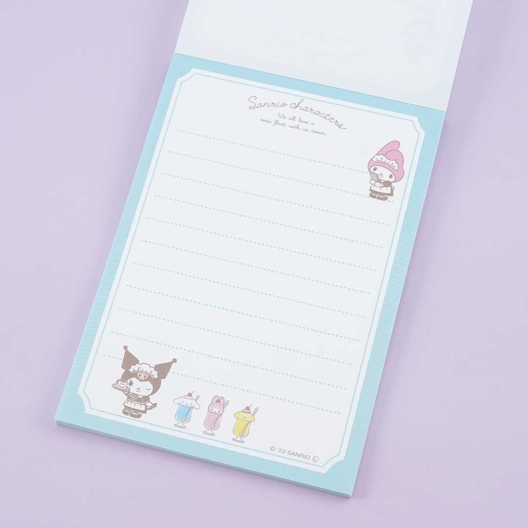A kawaii memo pad featuring the cute Sanrio Characters with their favorite cream soda and other sweets
