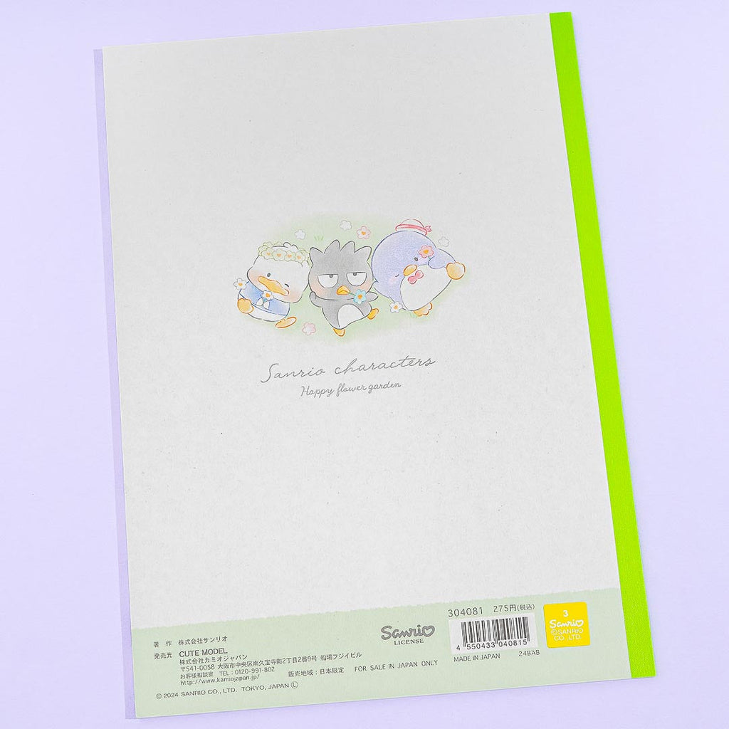 Write journal entries on the lined sheets of this super cute B5 cross notebook. It features prints of Sanrio characters rolling around in a field of flowers! This loose notebook is also perfect for writing short stories.
