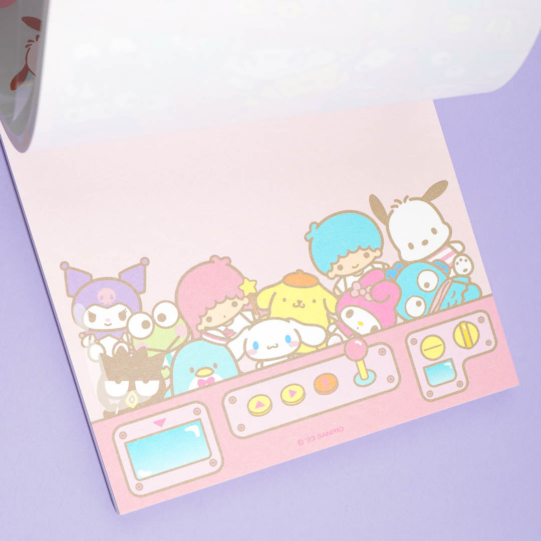 Stay organized by writing down important reminders on the colorful sheets of this cute memo pad! Its cover showcases Sanrio characters playing with a giant fruit parfait.