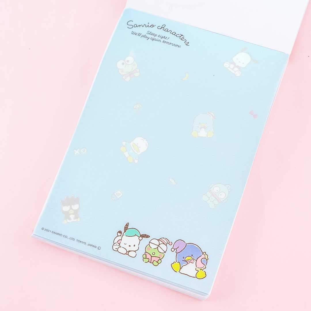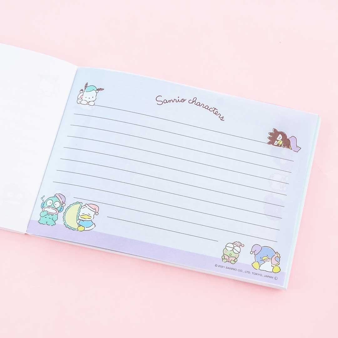 A super cute memo pad illustrated with prints of Sanrio characters from Hapidanbui universe