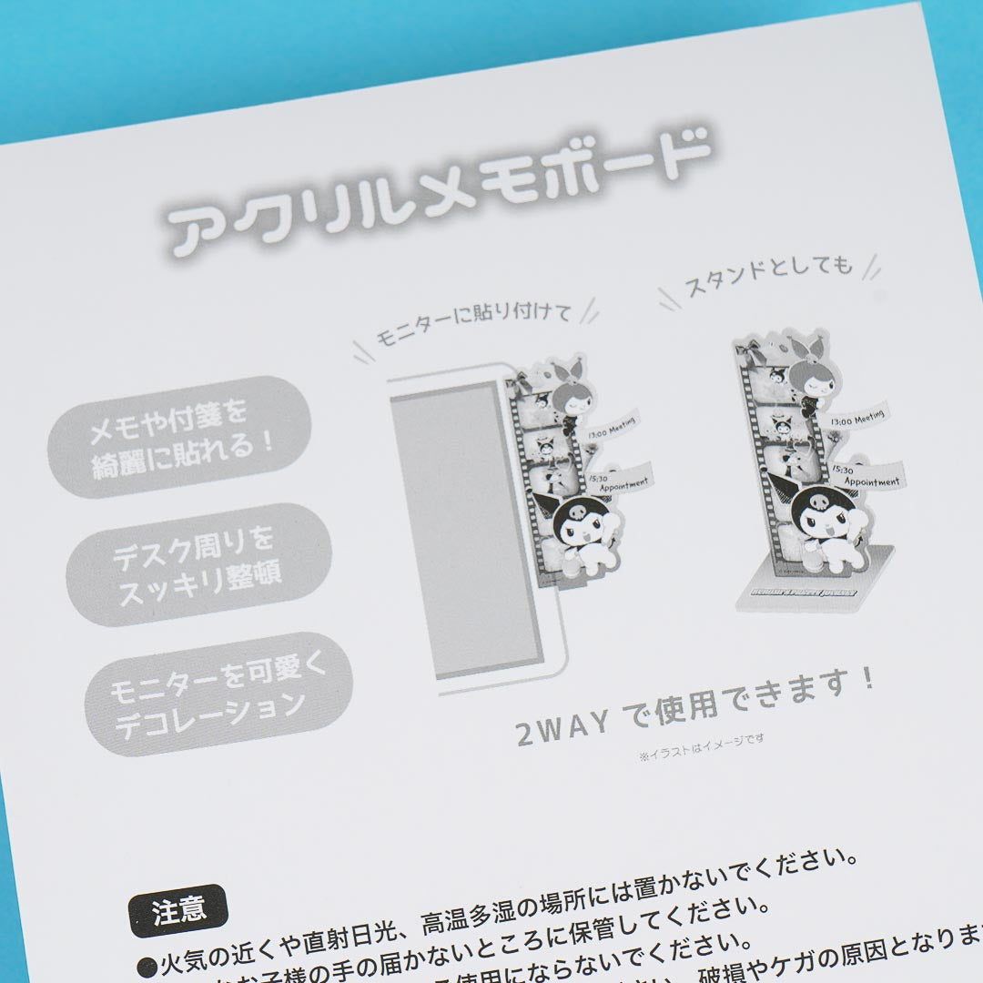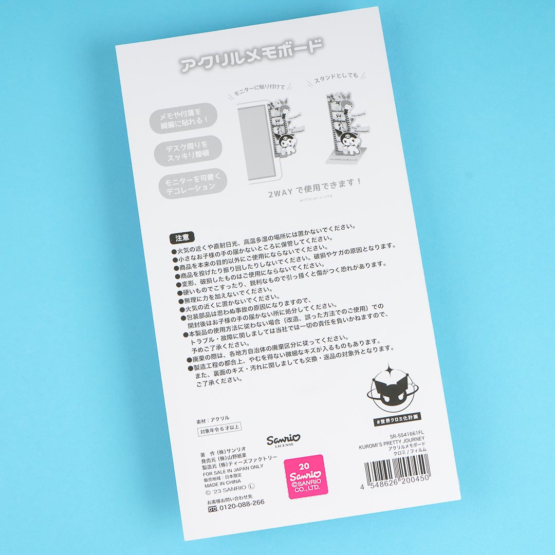 Keep track of your reminders by sticking them on this cute acrylic memo stand! It features a kawaii film roll design from Kuromi's Pretty Journey Series.