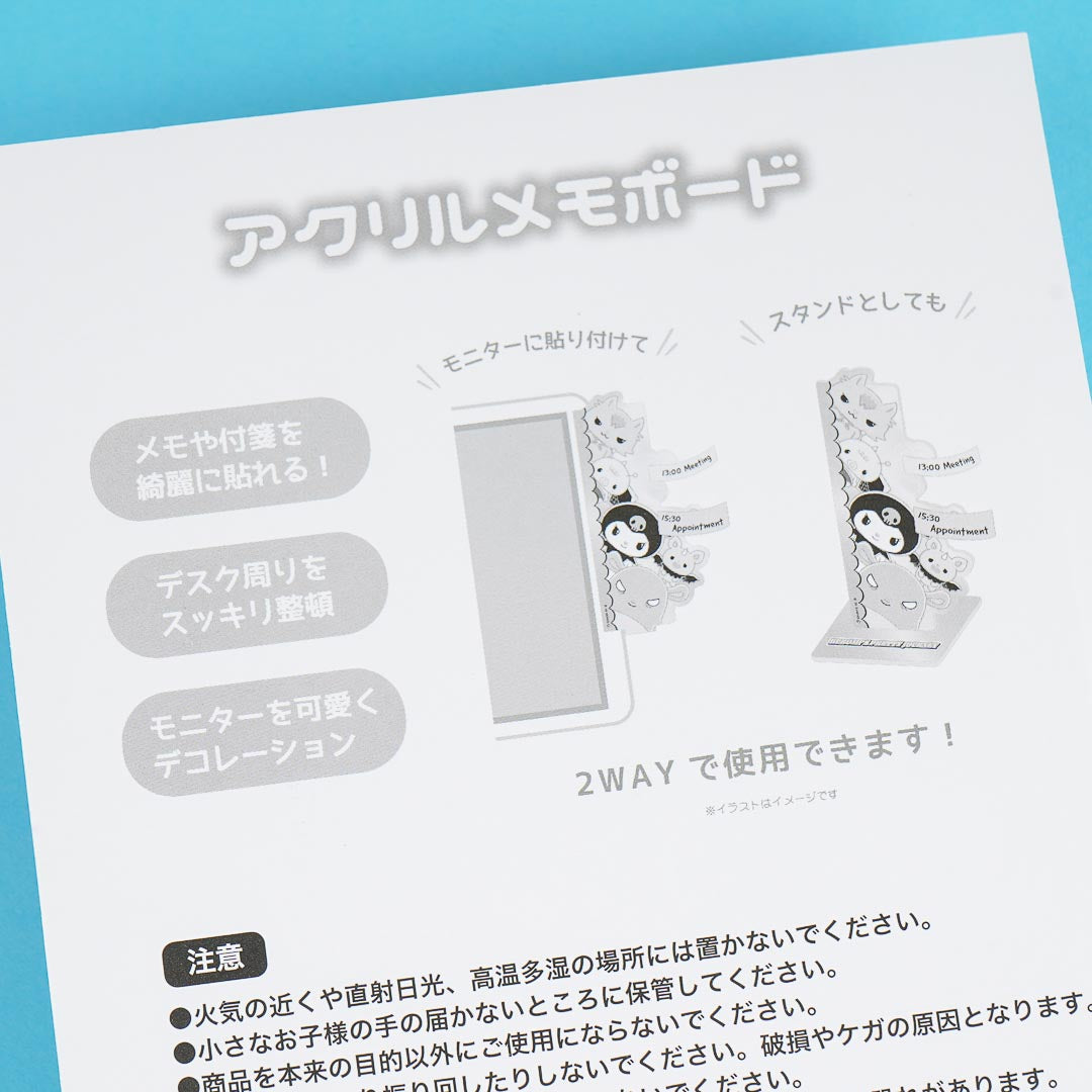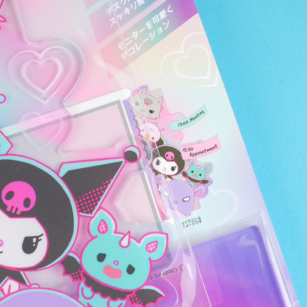 Place your sticky notes on this super kawaii memo stand! The die-cut design features Kuromi and her friends. You can attach this to your monitor or put it on your desk.