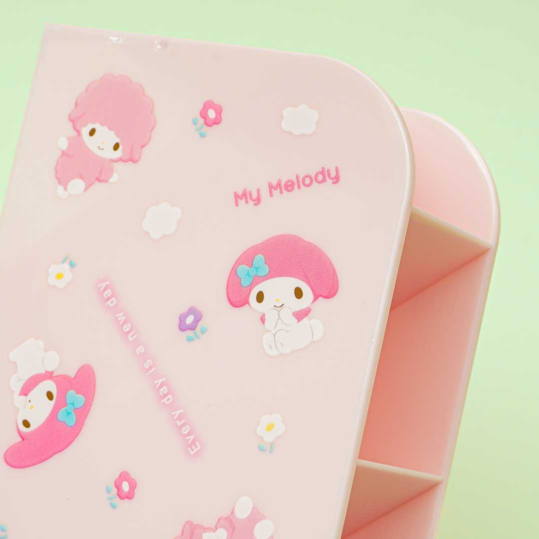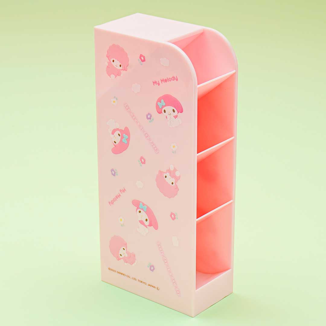 Use this super kawaii pen tower stand to arrange your pencils, highlighters, and other writing instruments. This cute pen stand is covered in prints of My Melody, My Sweet Piano, and flowers!