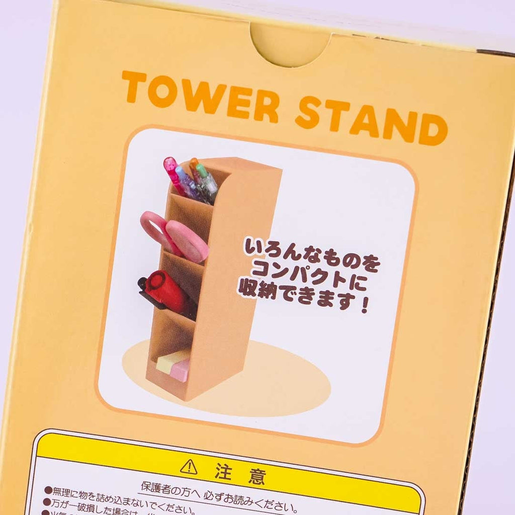 A cute slim-type tower stand with prints of Pompompurin, cherries, and pudding