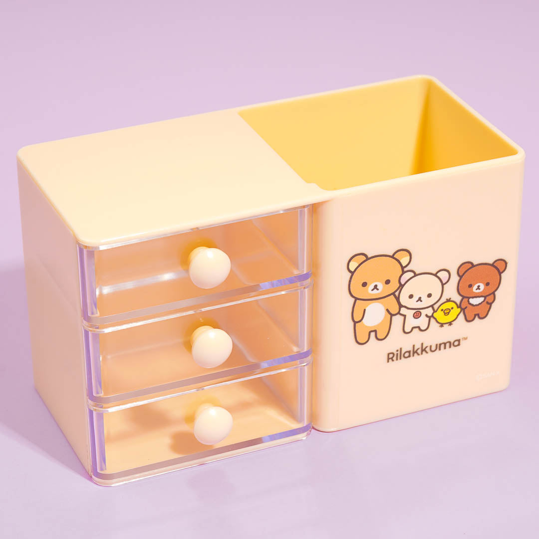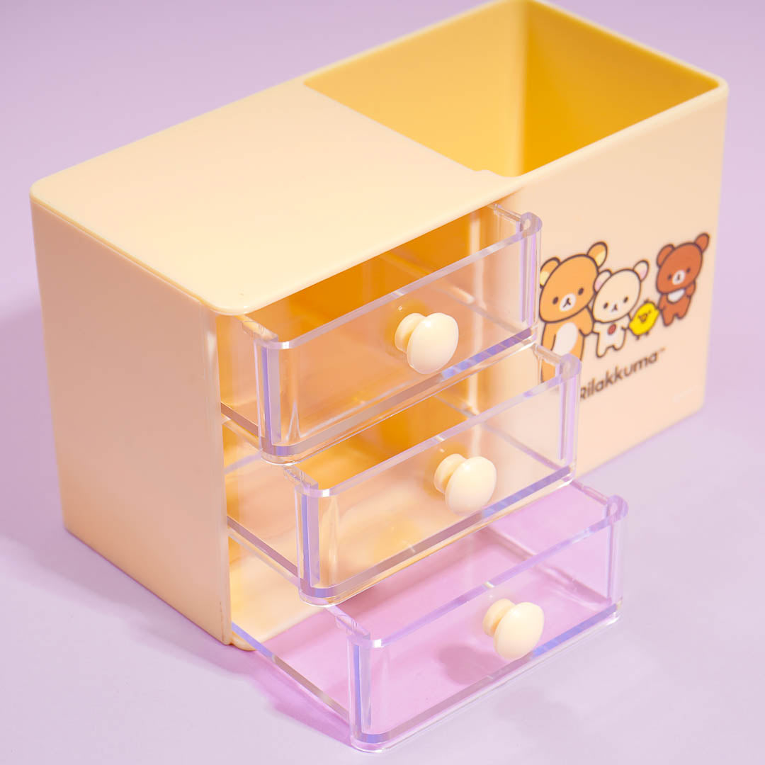 Keep your pens, pencils, paper clips, and other desk items tidy and neat with the help of this super cute organizer! It showcases prints of Rilakkuma and his friends. This desk organizer has a compartment for pens and three drawers that you can use.