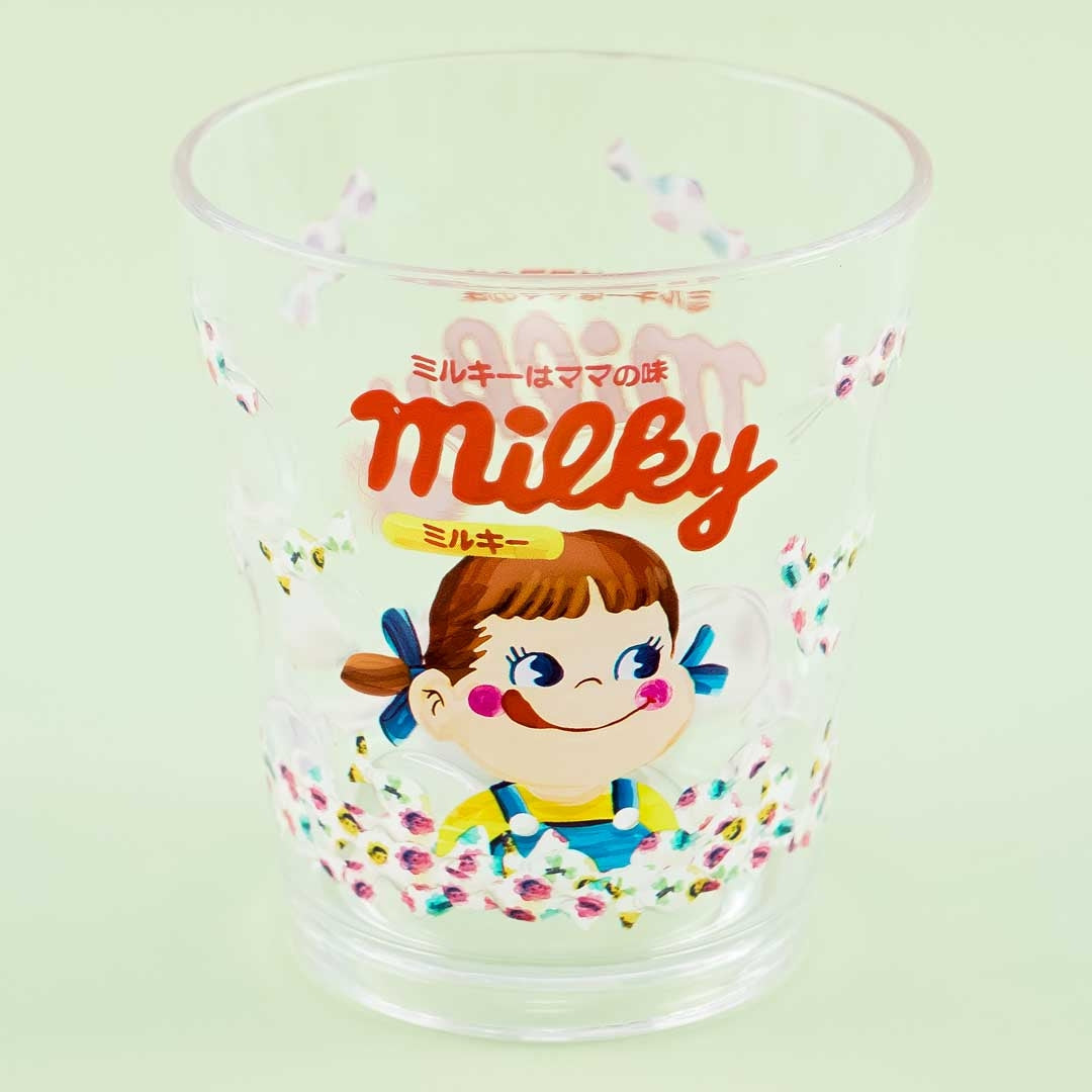 This kawaii acrylic cup features Peko-chan, the mascot of Milky candy! Use it to drink your favorite beverage!