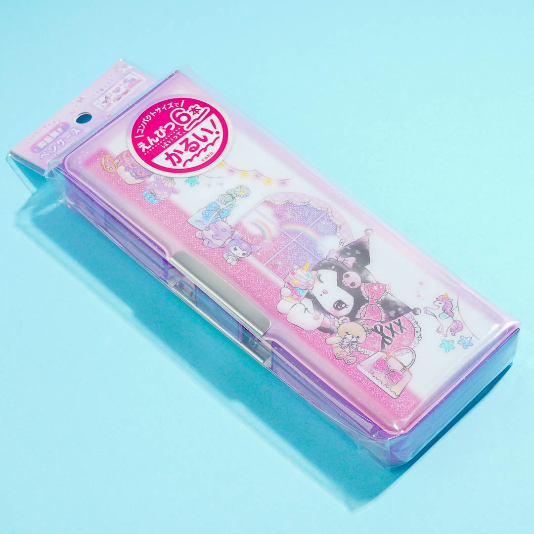 Organize your pencils, markers, and other school supplies inside this super cute case! It has kawaii pastel illustrations of Kuromi and her bedroom! This pen case also has two separate compartments on opposite sides, a removable sharpener, and special slots that are meant to hold your writing tools.