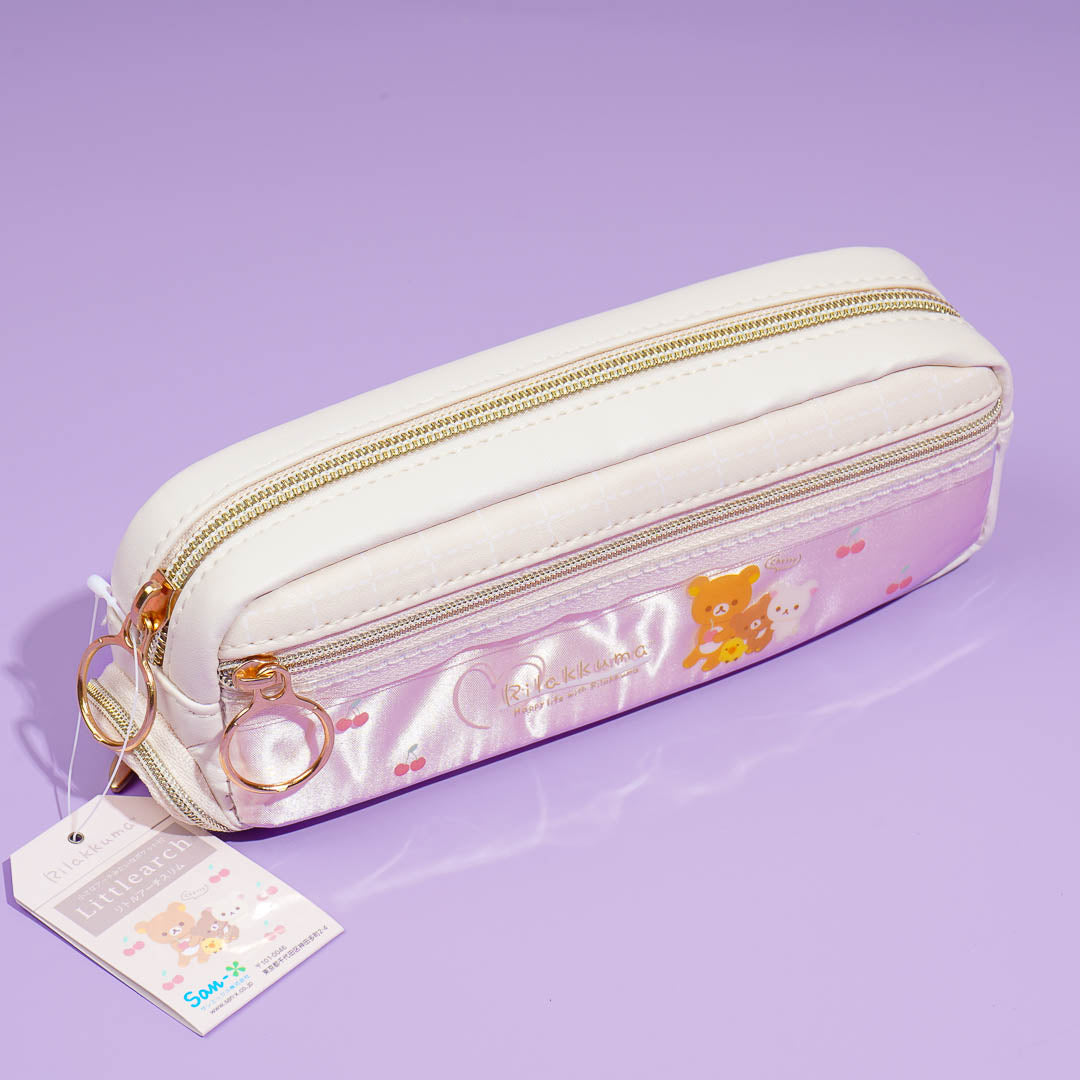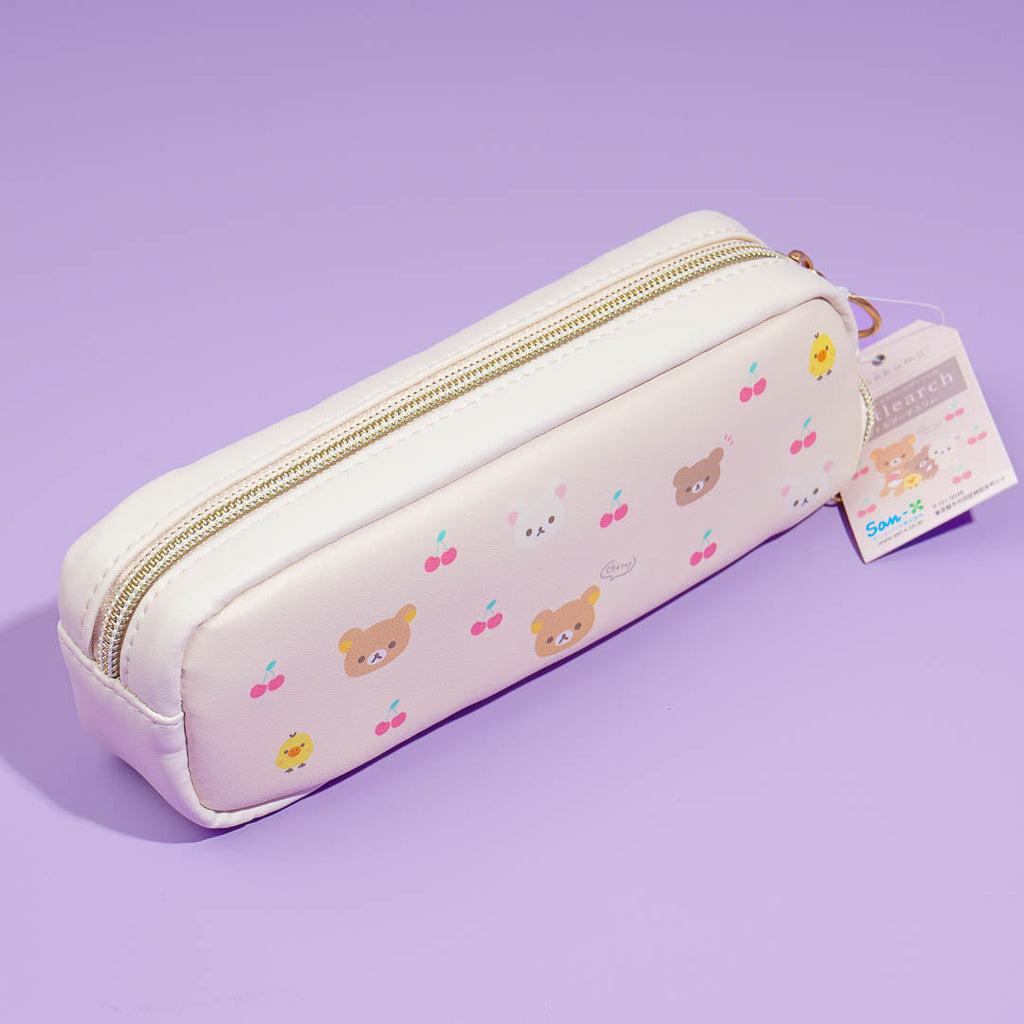 Organize your pencils and pens with this super kawaii leather case. It's decorated with prints of Rilakkuma, his friends, and cherries! This pencil case has multiple zippered compartments where you can store your things.