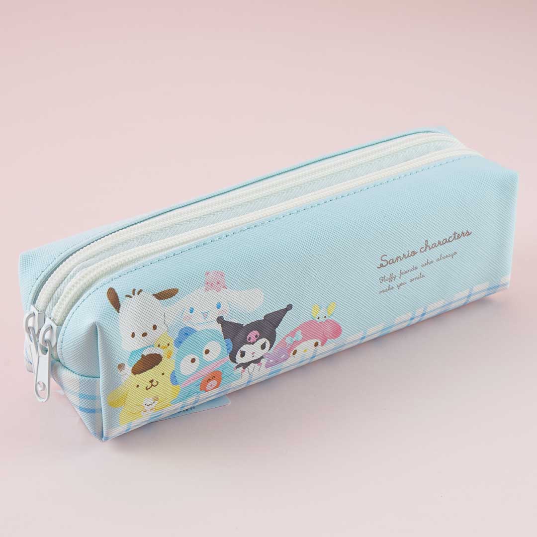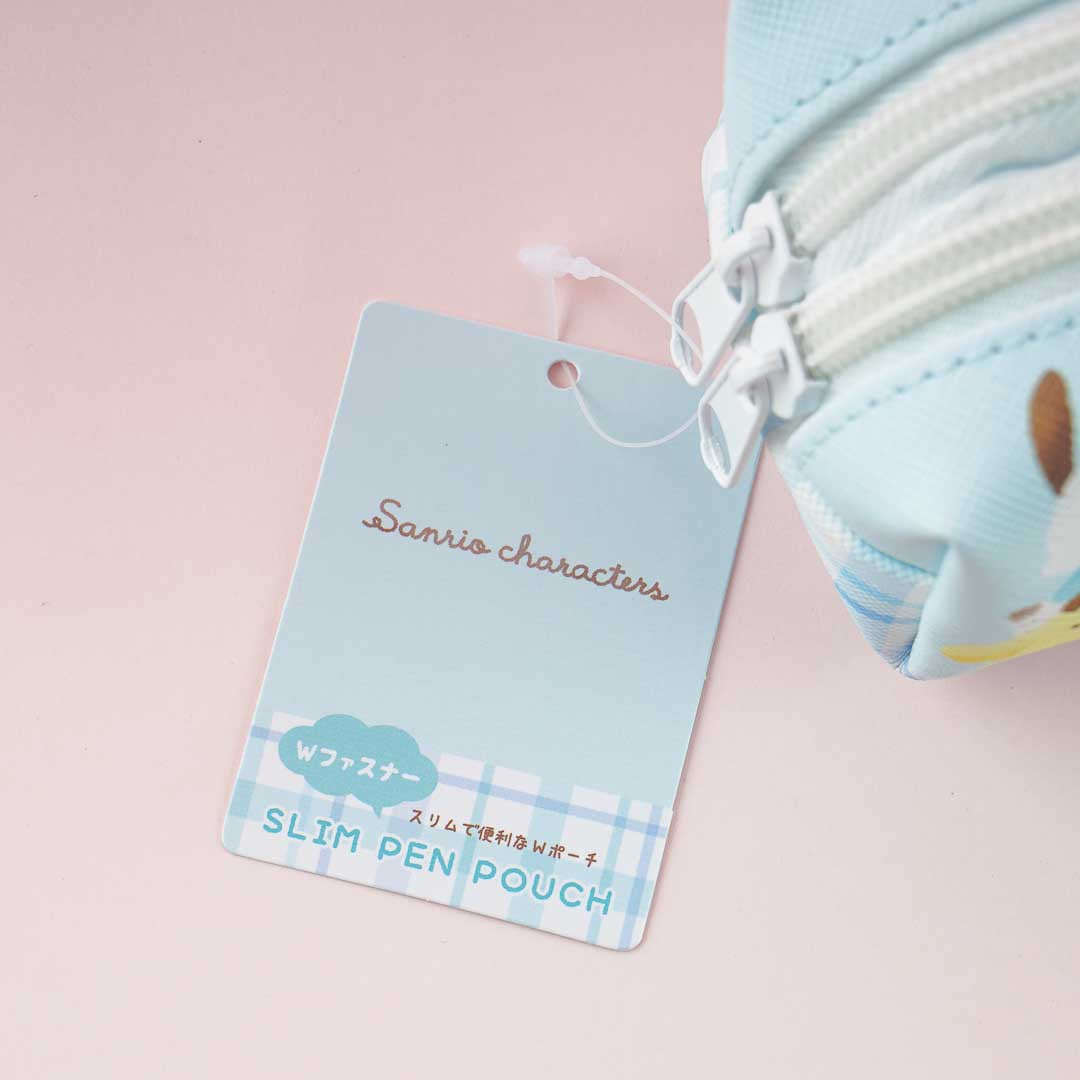 Organize your favorite pens and pencils inside this slim pouch! It has two separate zippered sections and is decorated with kawaii illustrations of popular Sanrio Characters like Pochacco, Kuromi, Pompompurin, and more.