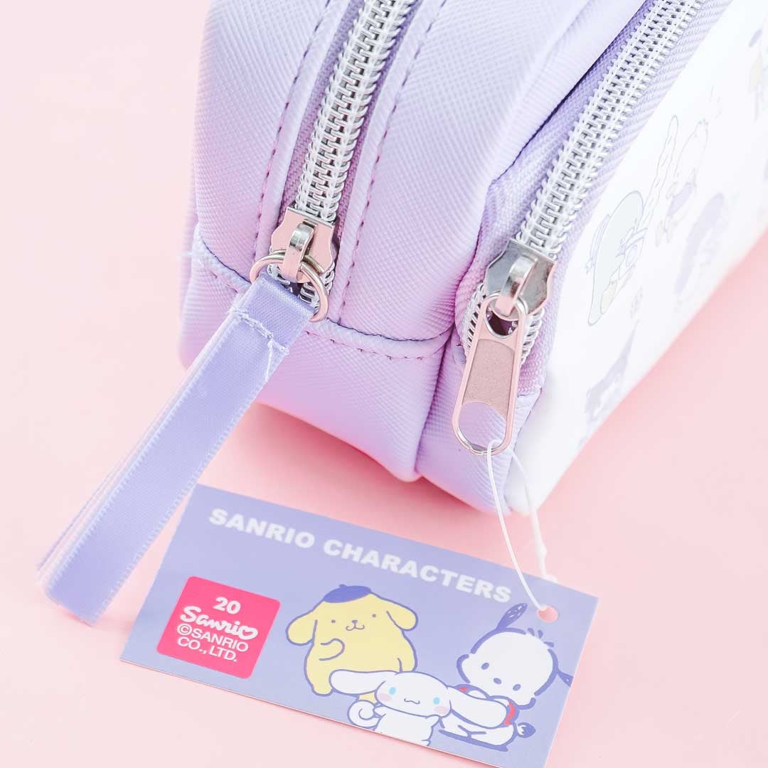 A cute twin zipper pouch illustrated with Sanrio characters playing together
