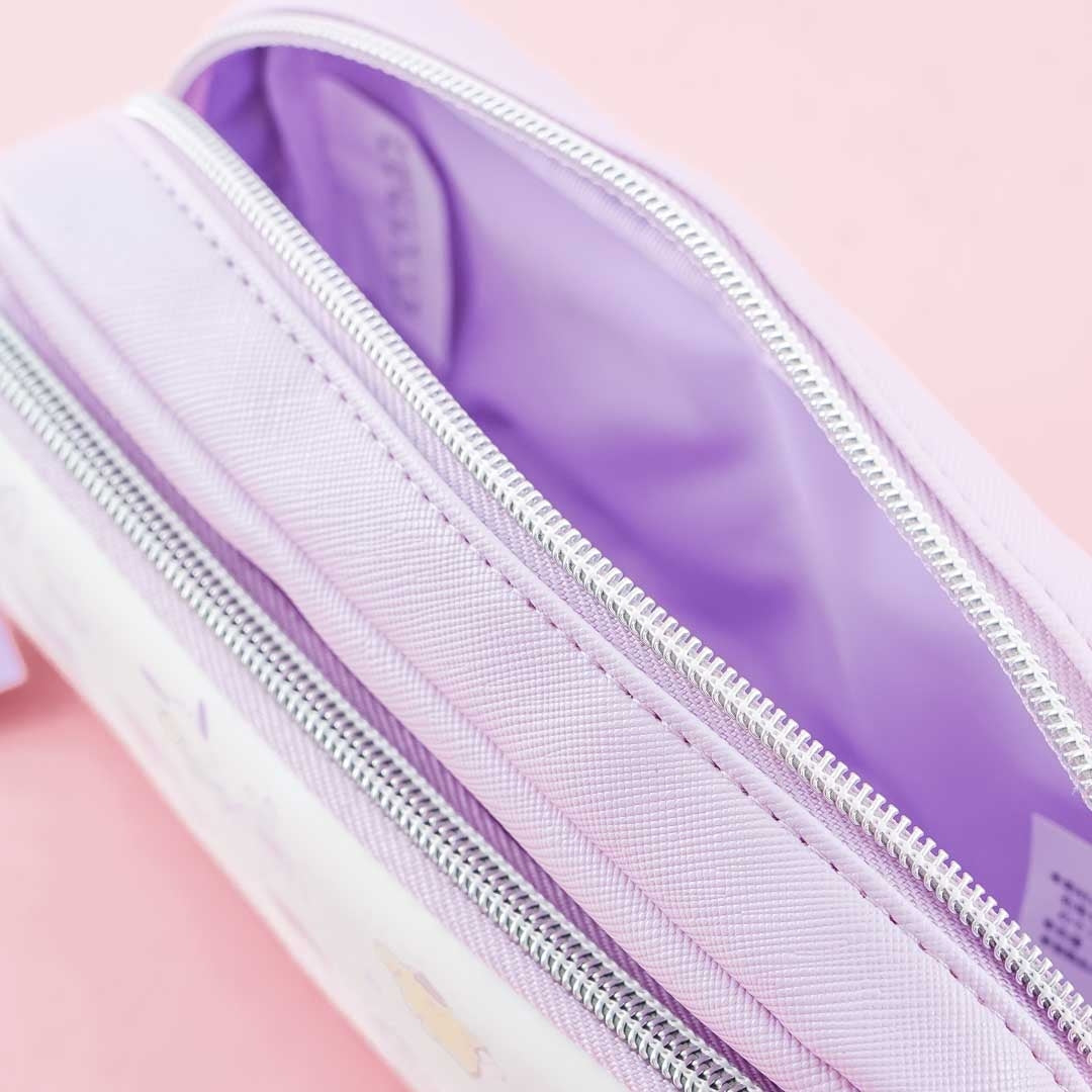 Use this kawaii pouch to organize your pens and other writing tools! This pouch features prints of Sanrio characters playing together. It has two zippered compartments for you to use.