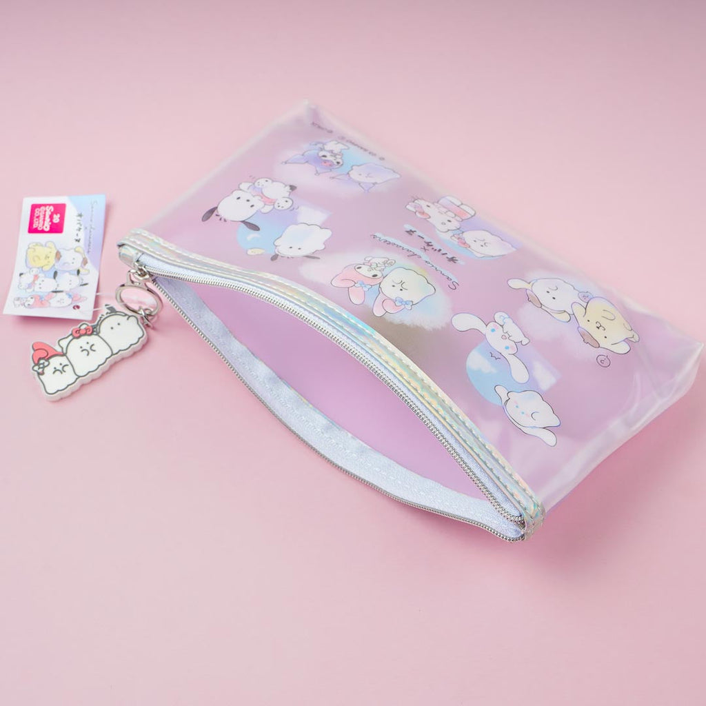 Keep your writing materials in this kawaii pen case! The front part is transparent and decorated with cute Sanrio Characters and their matching Obakenu ghosts. It also comes with a holographic zipper lining.