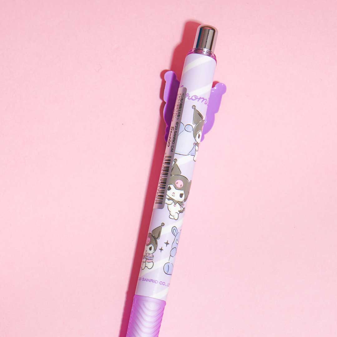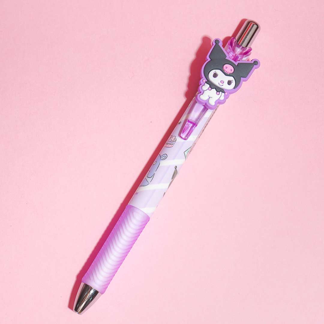 Write your stories in kawaii-style with this one-click, purple-striped pen! It features Kuromi giving cute gifts to her friends. This also comes with a rubber charm for extra cuteness.