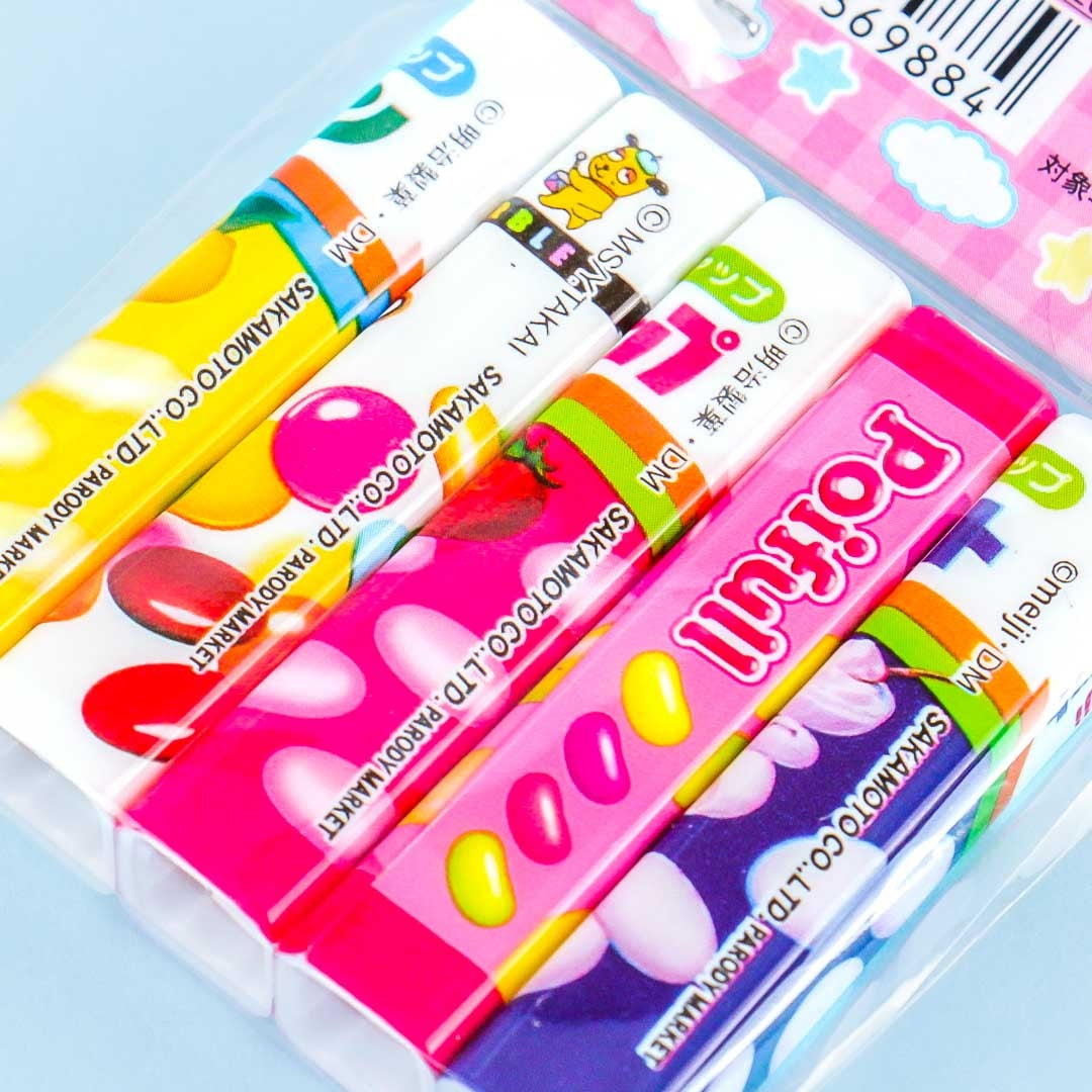 Maintain the lead tips of your sharpened pencils using these kawaii rectangular pencil caps. This colorful set has illustrations that feature the different Meiji candies like Poifull jelly beans, Hi Lemon, and many more!
