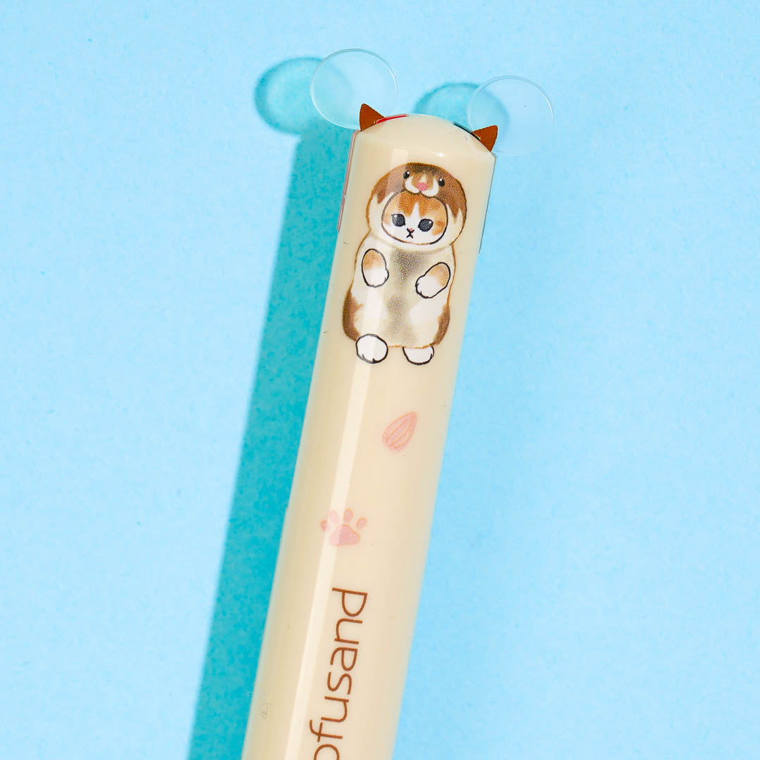 Write cute short stories with the help of this super kawaii pen. It showcases a print of Mofusand cat wearing a hamster suit. This pen has protruding ears which you can use to switch between ink colors!