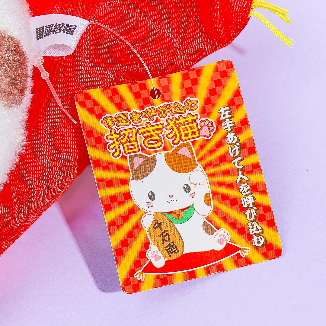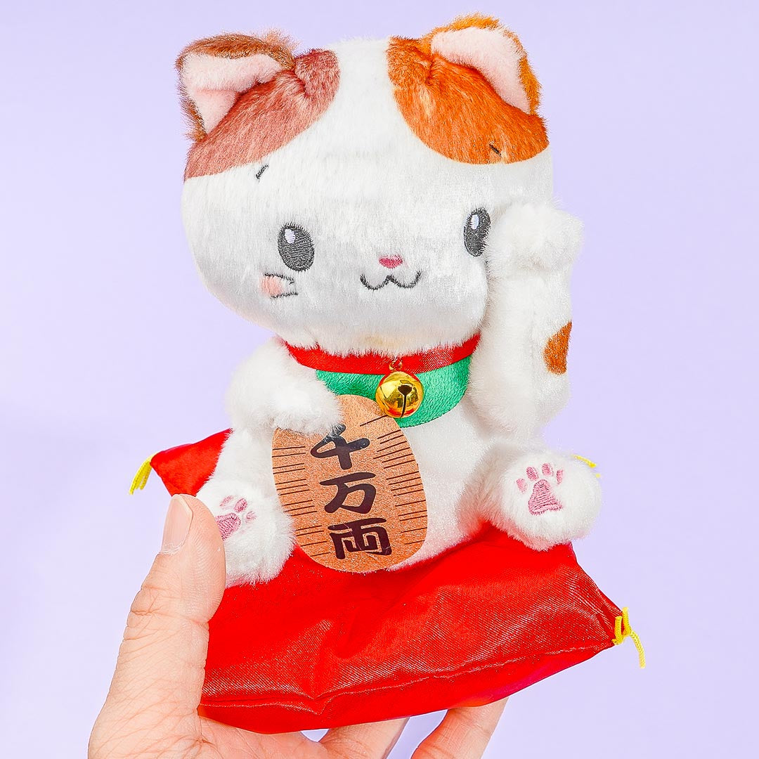 A maneki-neko is a figure of luck in Japan. Add some luck to your work space by decorating it with this cute maneki-neko plushie! It has a cute smile on its face. This medium-sized stuffed toy is the perfect addition to your plush collection.