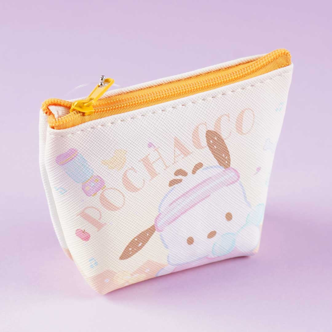 A super cute zippered mini pouch featuring prints of Pochacco excercising