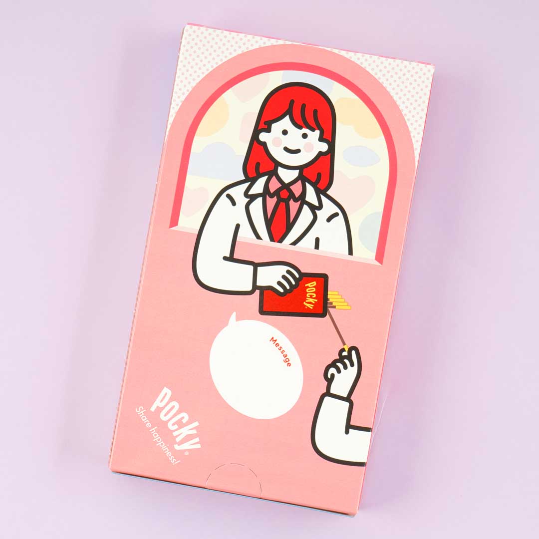 Pocky are light stick shaped biscuits covered in chocolate and get their name from their "pocky" sounding crunch. For this special flavor, the chocolate biscuits are coated in creamy strawberry chocolate made with actual strawberry bits. The end of the sticks has been left uncoated, so you will not get your fingers sticky while enjoying this sweet treat!