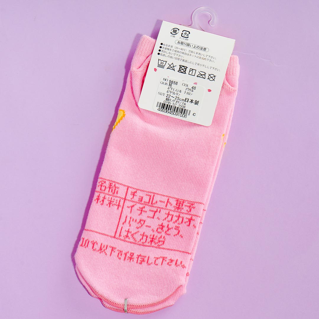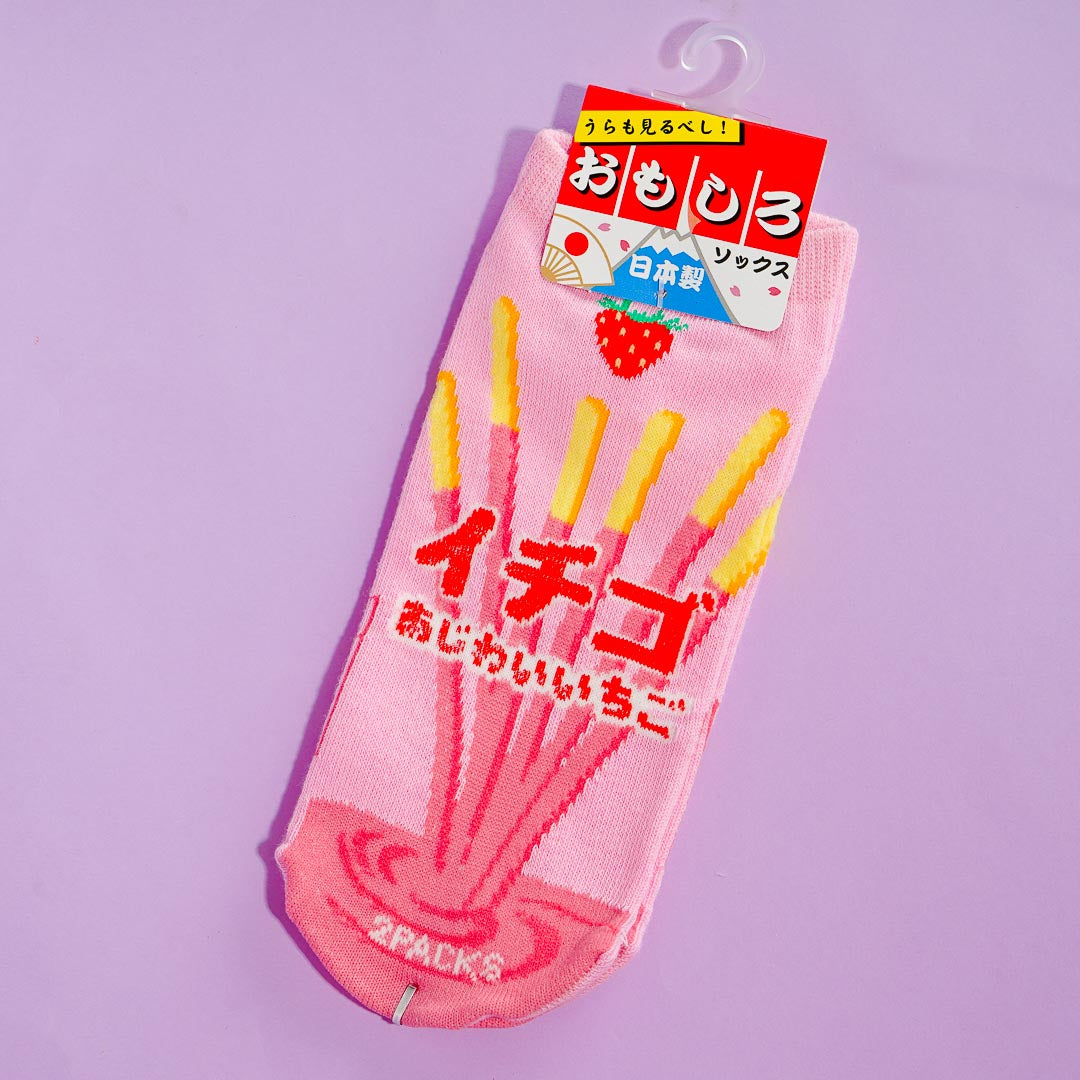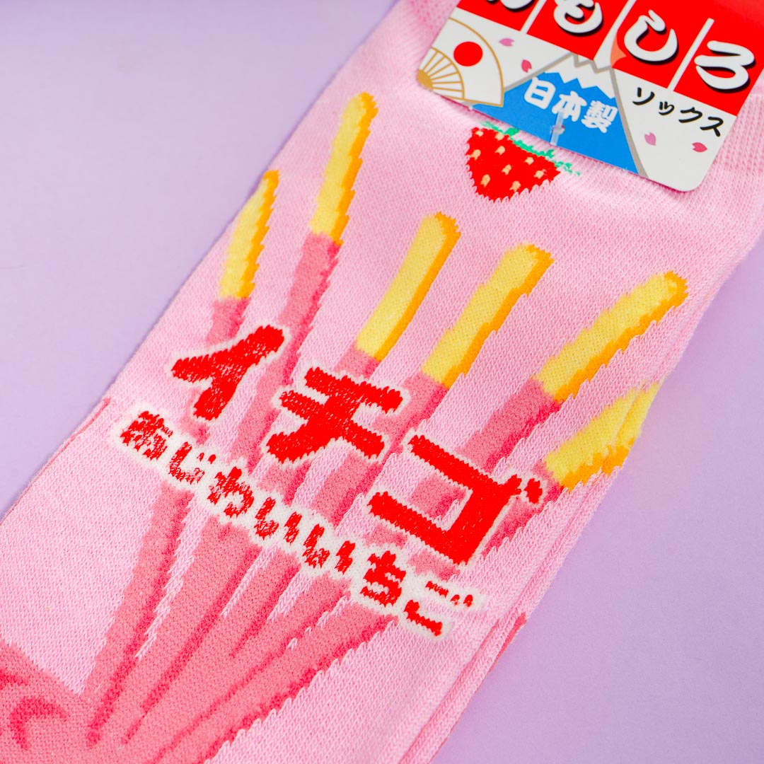 Always look cute and comfy even when at home by wearing this kawaii pair! These pink socks are decorated with prints of strawberry Pocky biscuit sticks!