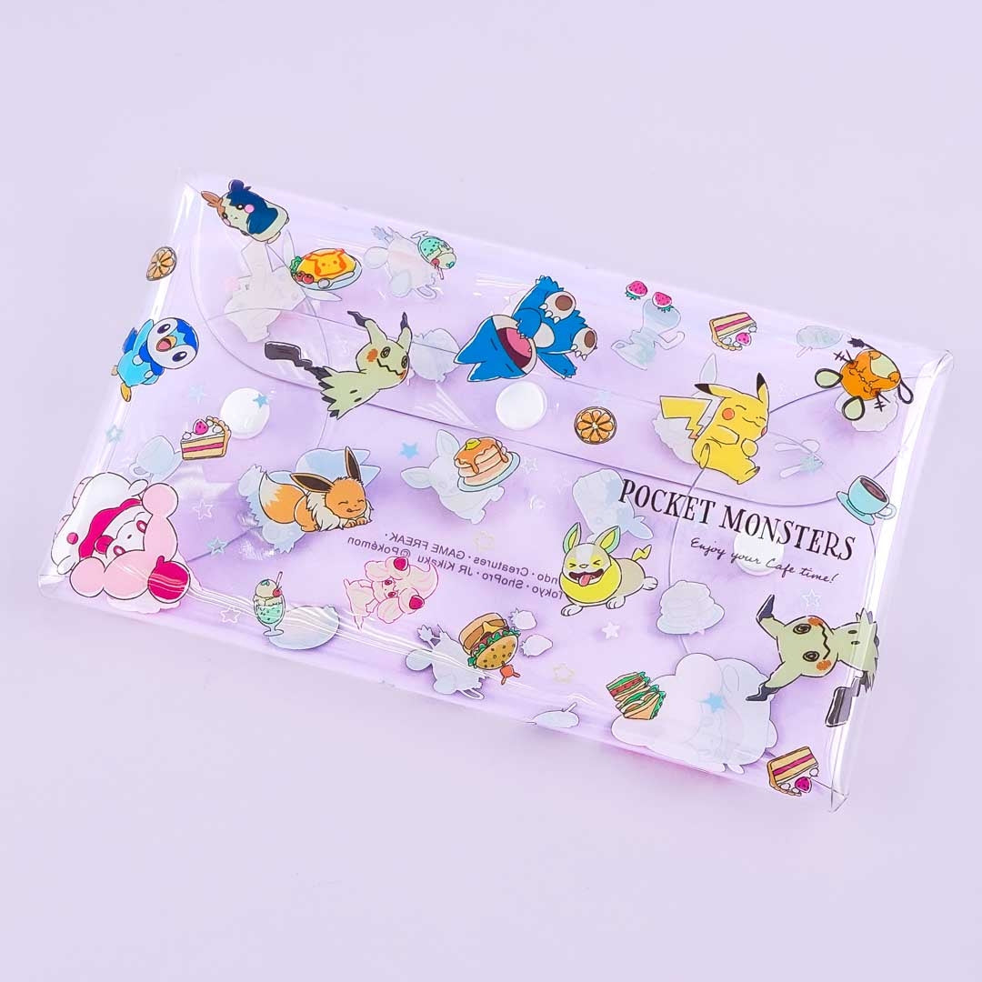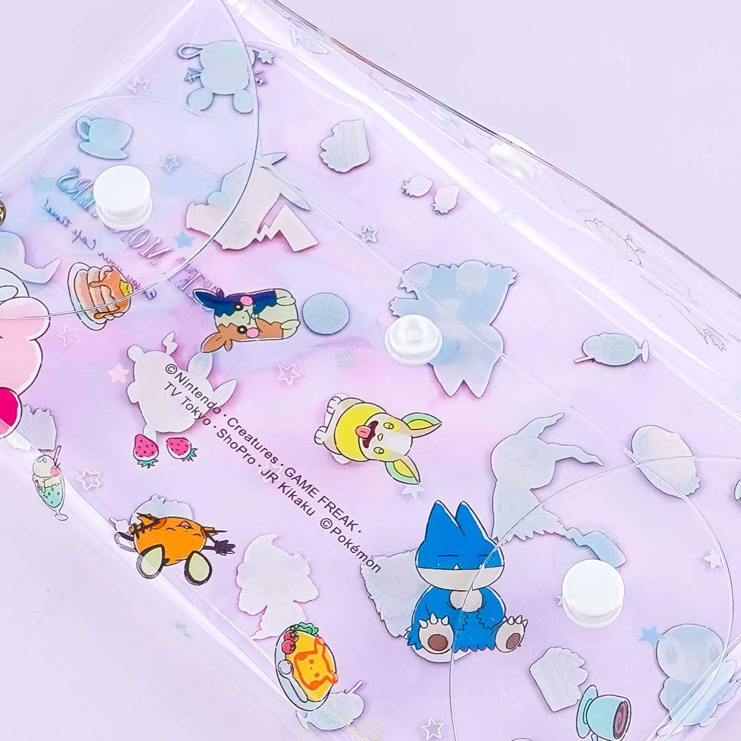 This translucent plastic case is filled with prints of super cute Pokémons like Munchlax, Slurpuff, Yamper, and more — surrounded by café treats like burgers, sandwiches, and cake! Use this handy case with triple snap button closures to store your brush pens and other knickknacks.