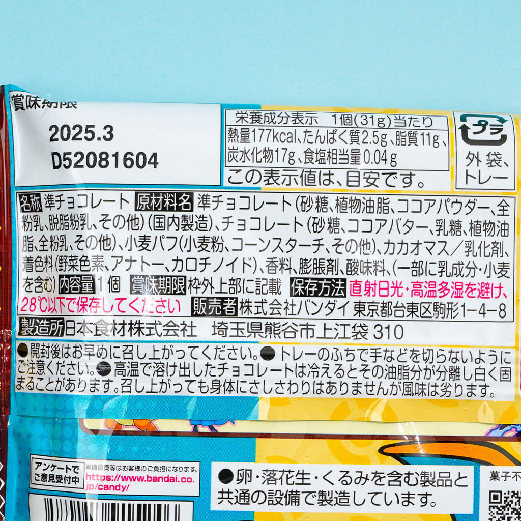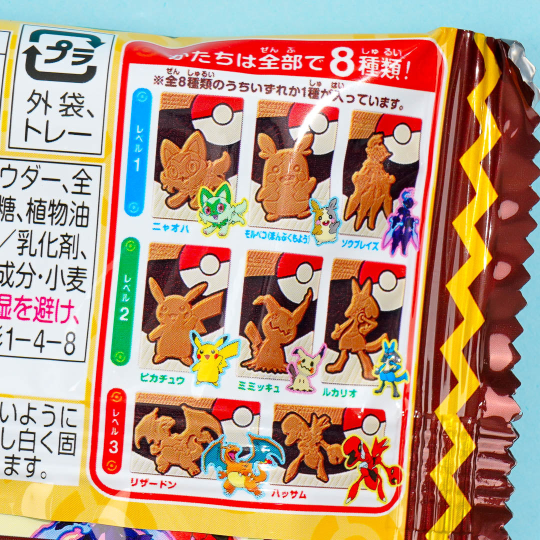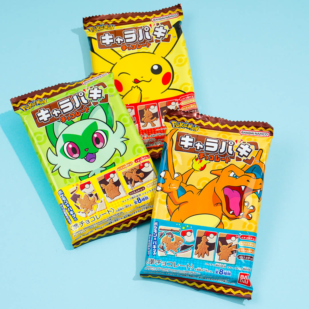 Charapaki is Bandai's fun and popular brand of chocolate bar that you can crack, with a character at the center. Add a fun twist to your snack time with this crispy puff-filled chocolate treat! The white chocolate in the middle is shaped like a Pokemon.