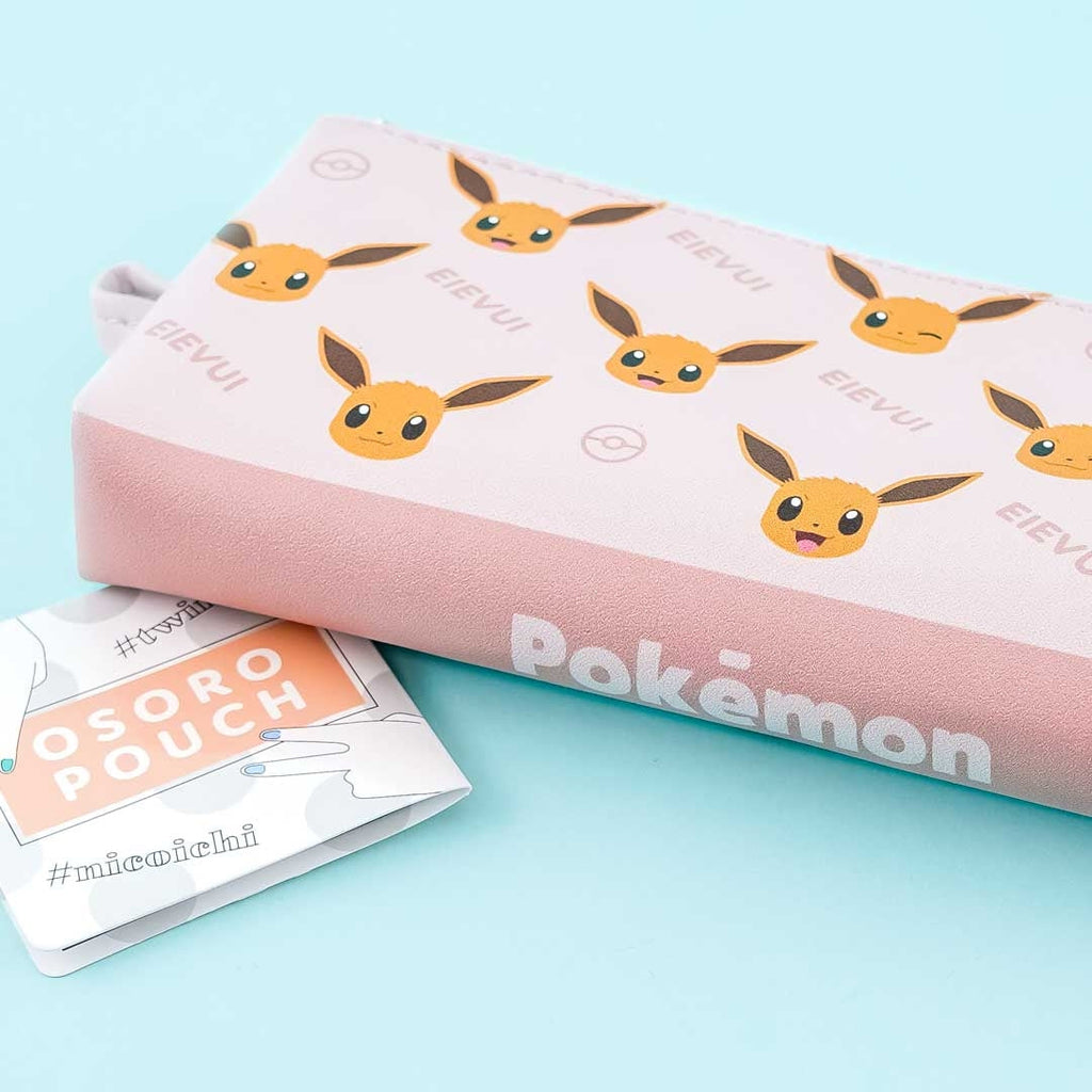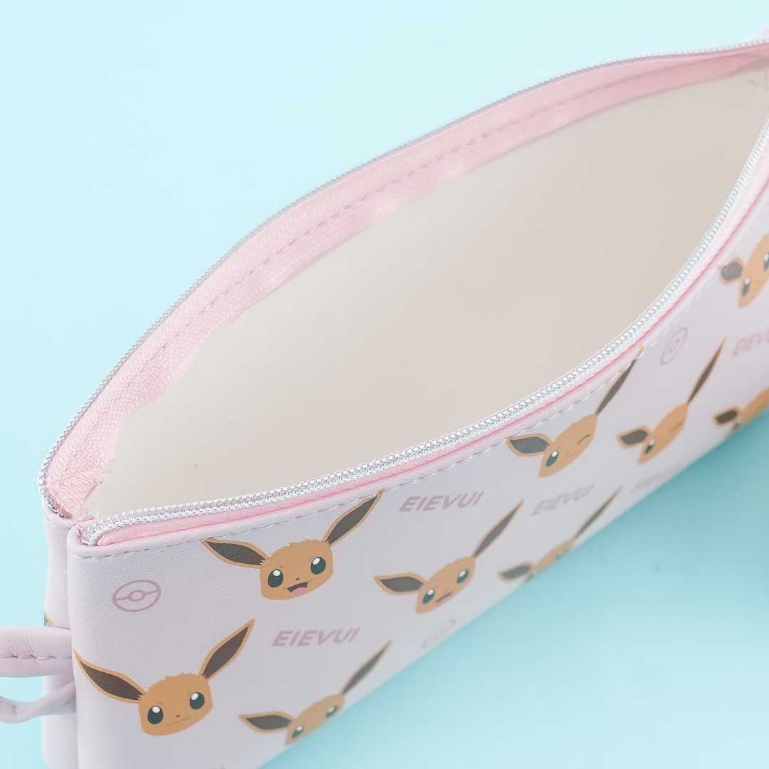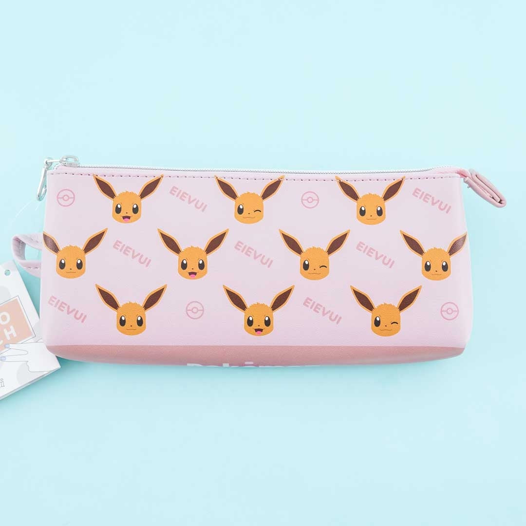Use this zippered synthetic leather pouch to organize your gel pens, ballpoint pens, and other writing tools! It’s filled with “osoro” or matching patterns of Eevee's happy faces and pokéballs!