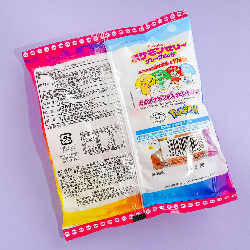Enjoy the refreshing fruity taste of this pack of grape-flavored jelly! The jelly cup features 17 random lid designs with cute Pokemon characters.