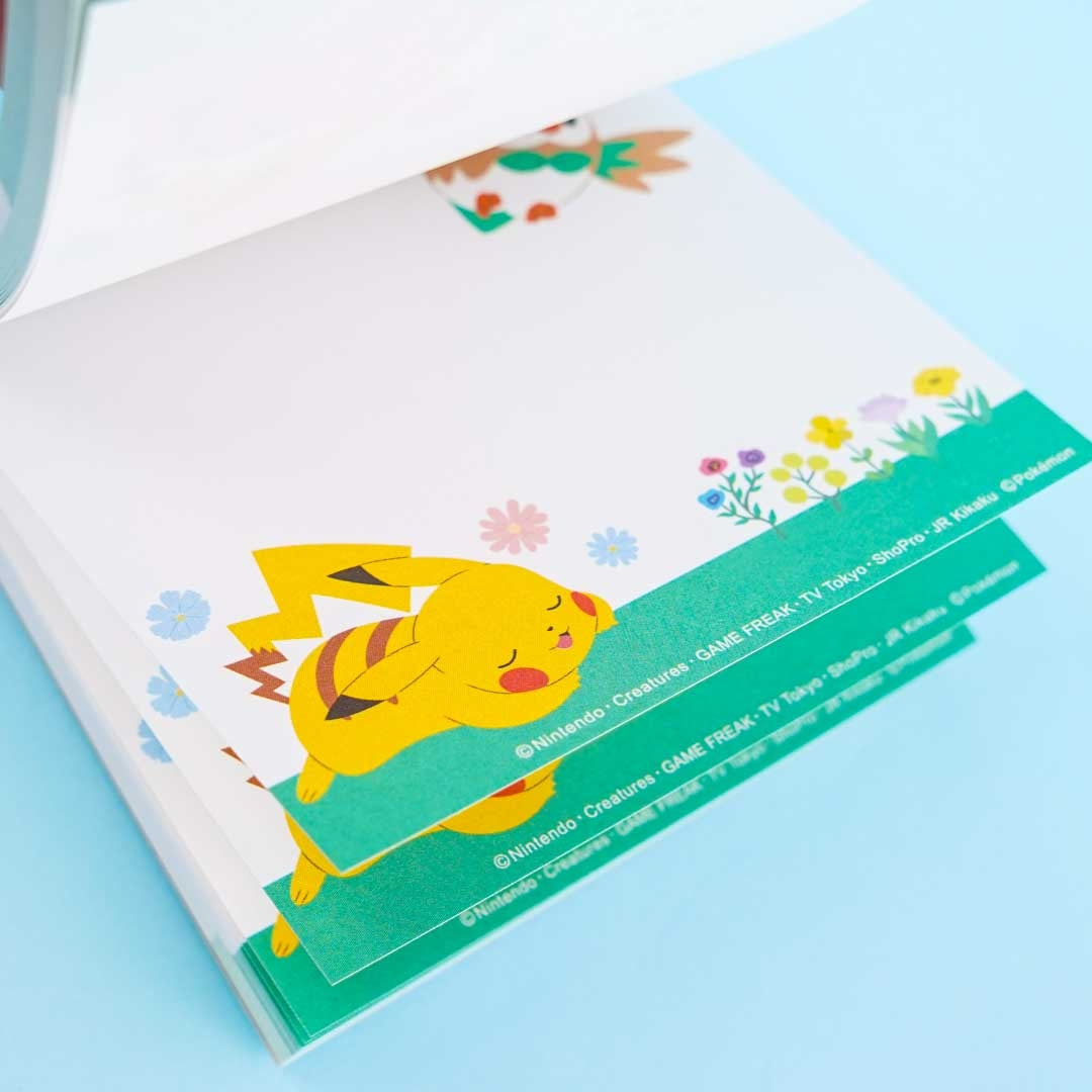 • A super kawaii square-shaped memo pad featuring Pokémons and flowers