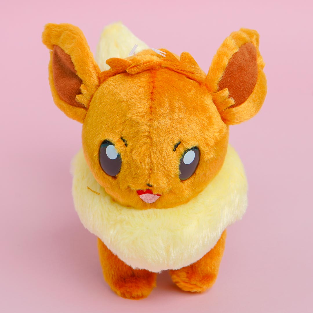 Meet Eevee, the cute Pokemon with Pokedex No. 133! This kawaii medium-sized plushie is made from fluffy material and has shiny plastic eyes. Add it to your Pokemon collection!