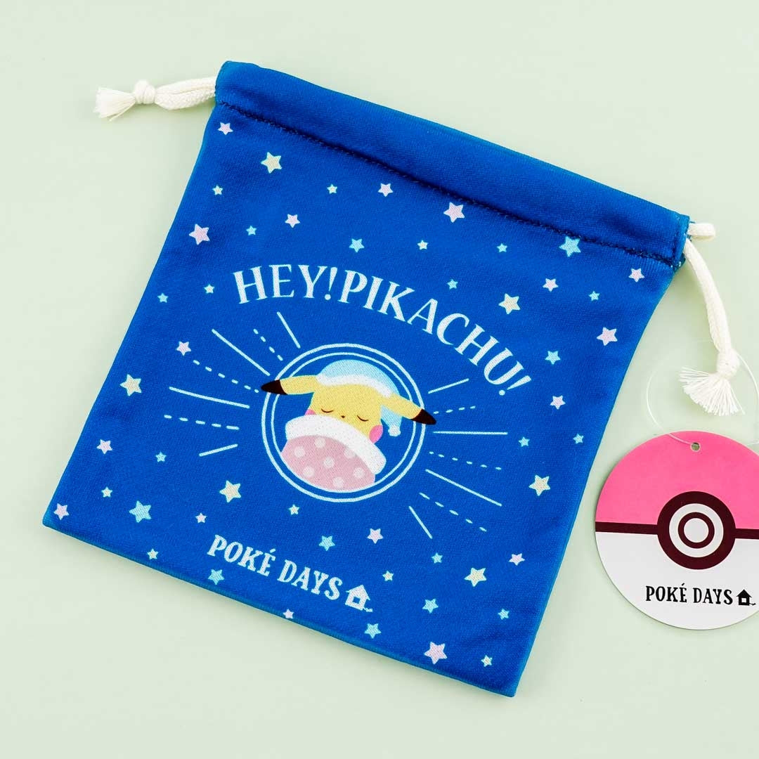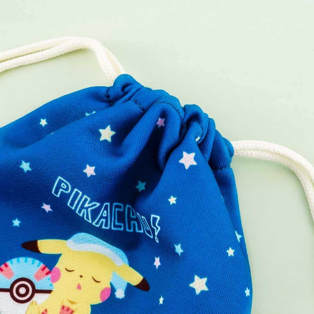 • A cute drawstring pouch featuring a sleeping Pikachu and lots of stars