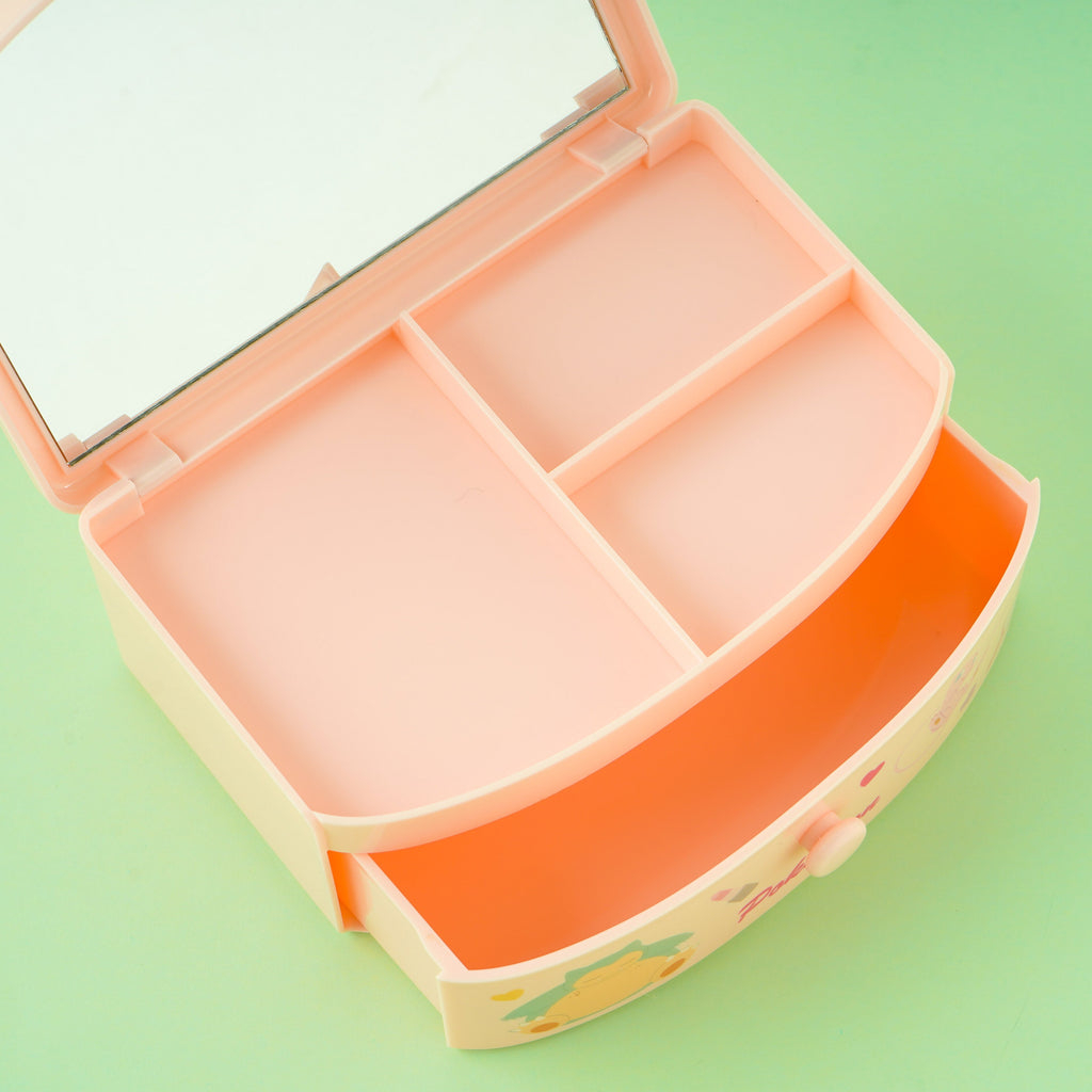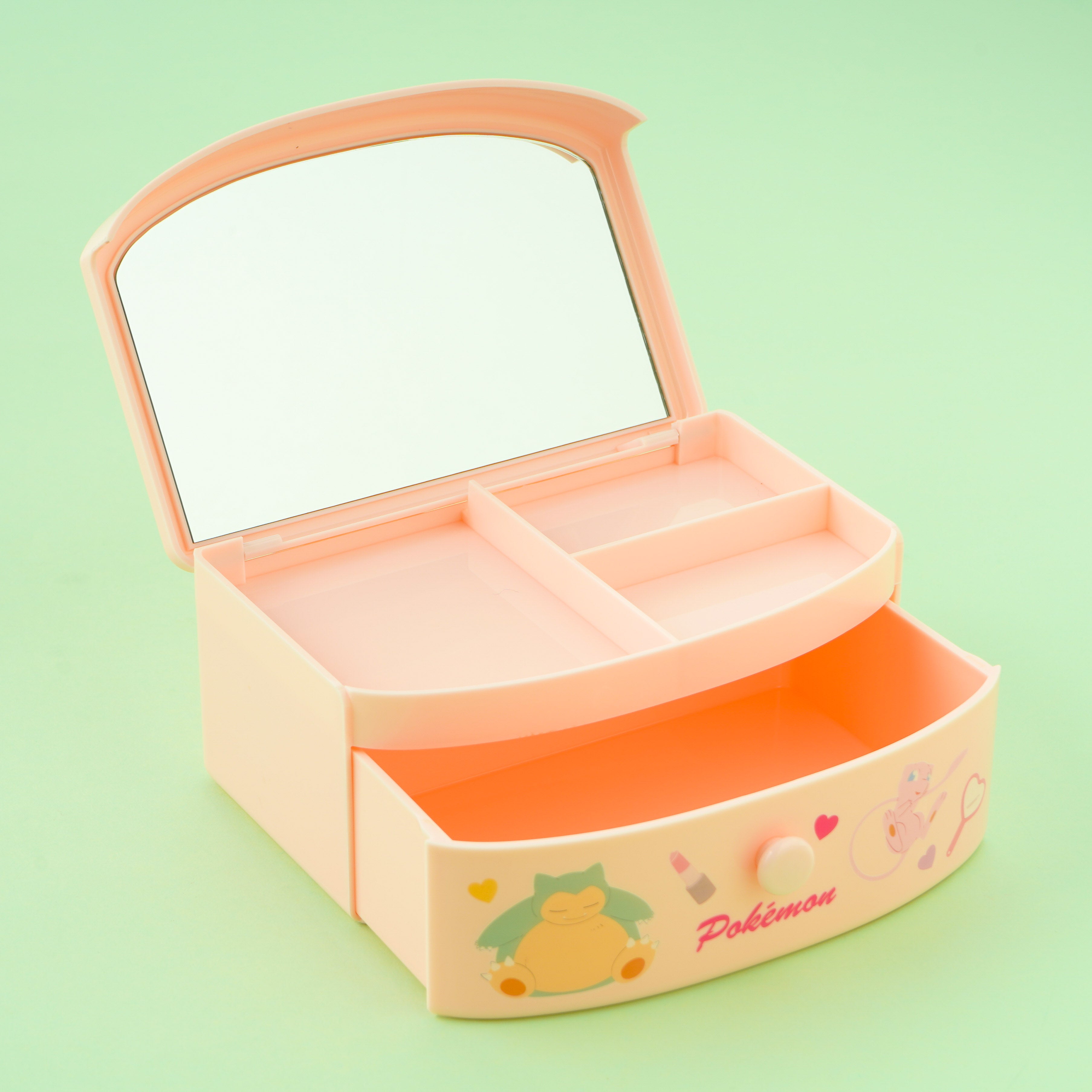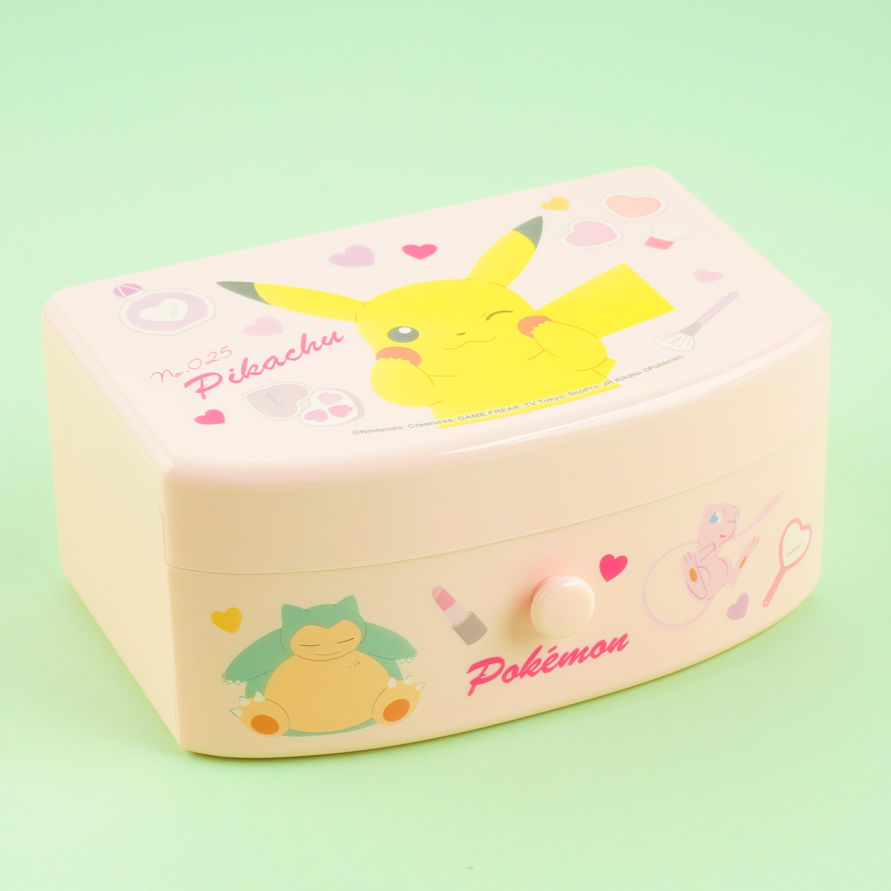 Keep your fave bracelets, rings, and other accessories inside this super cute jewelry box! It has a convenient single pull-out drawer and an upper tray with several partitions. This kawaii case is decorated with lots of hearts, makeup products, and popular Pokemon like Pikachu and Snorlax!