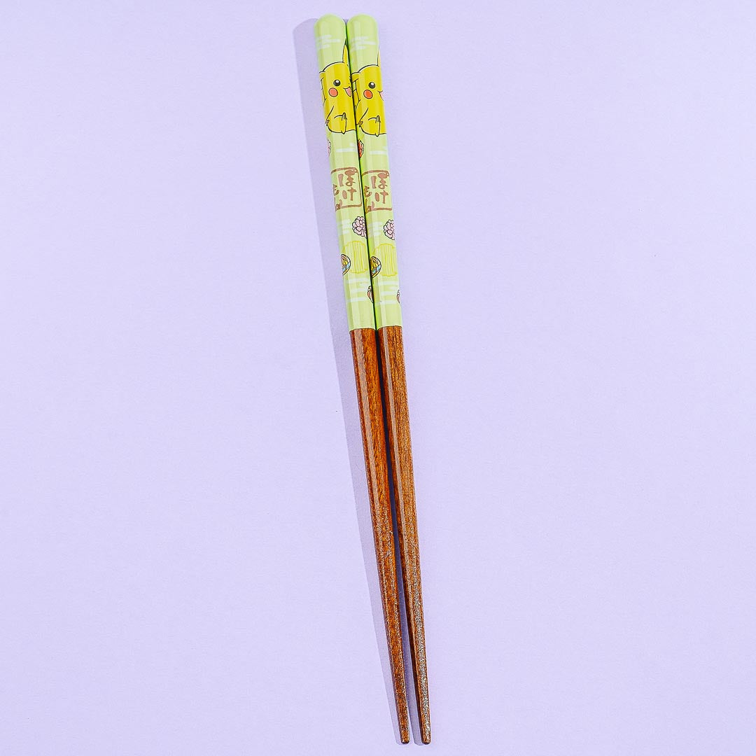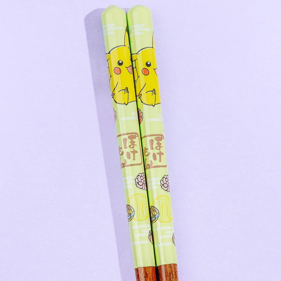 These super cute wooden chopsticks are painted with illustrations of Pikachu in a flower festival! The tips have a square shape that makes them easy to grasp. They also have a non-slip finish. Don't forget to bring these Pokemon chopsticks together with your bento box!