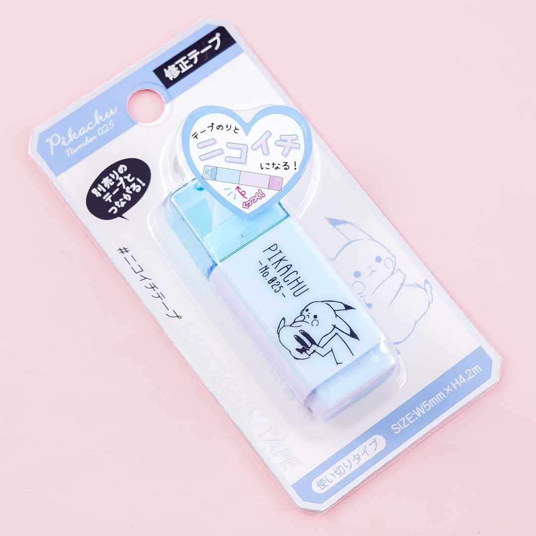 This correction tape comes in a cute special case printed with an illustration of the electric-type Pokemon, Pikachu! Its end can be connected to a glue tape dispenser from the same "nikoichi" collection. "Nikoichi" is a Japanese word that means "two parts become one".