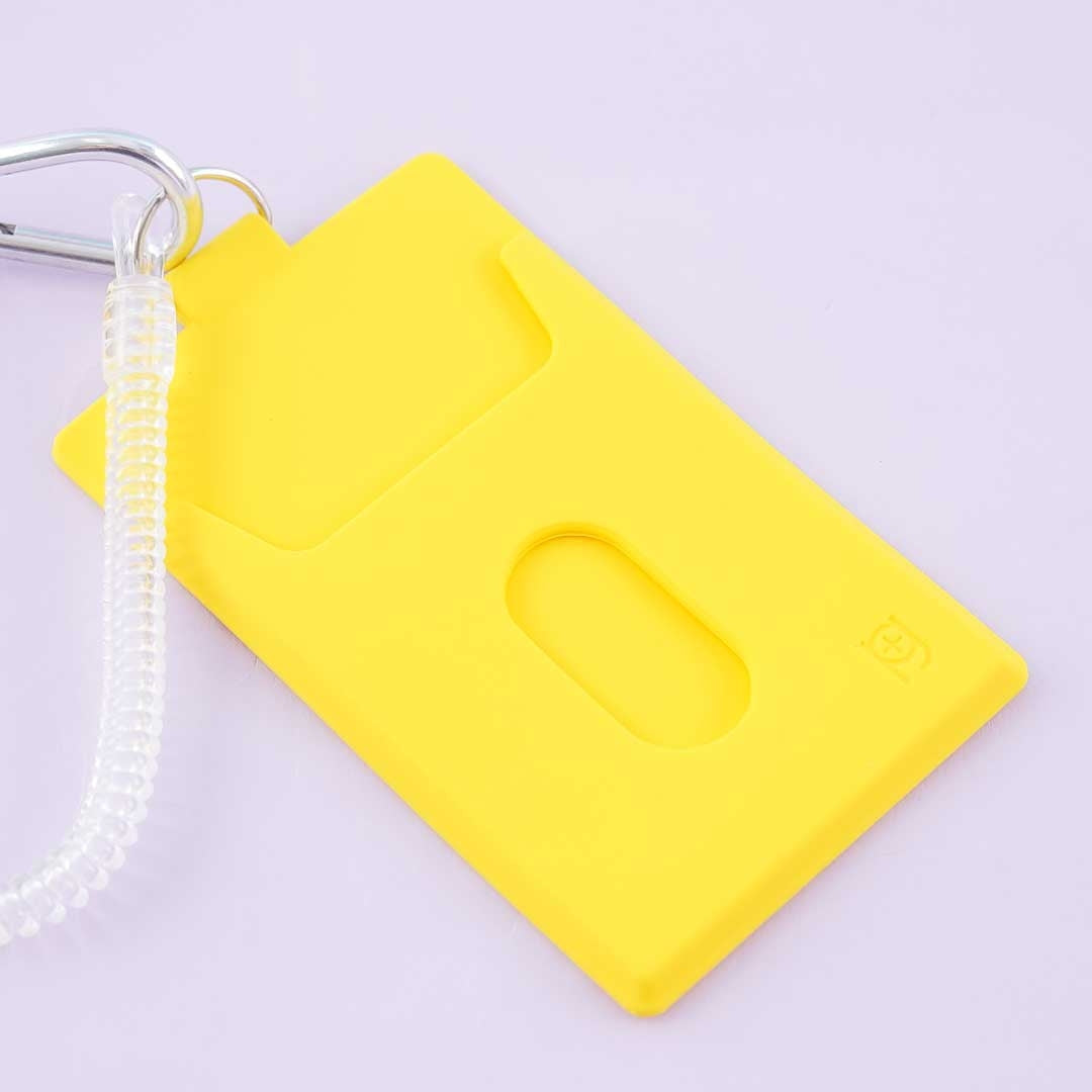 Keep your cards inside this super kawaii silicone card case featuring prints of Pikachu's face! It has an elastic curl cord and a metal hook.