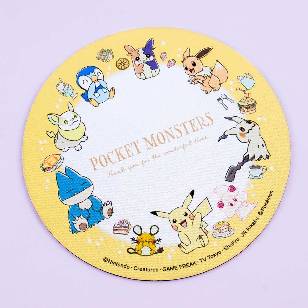 • A kawaii round-shaped mouse pad with illustrations of popular Pokémon characters