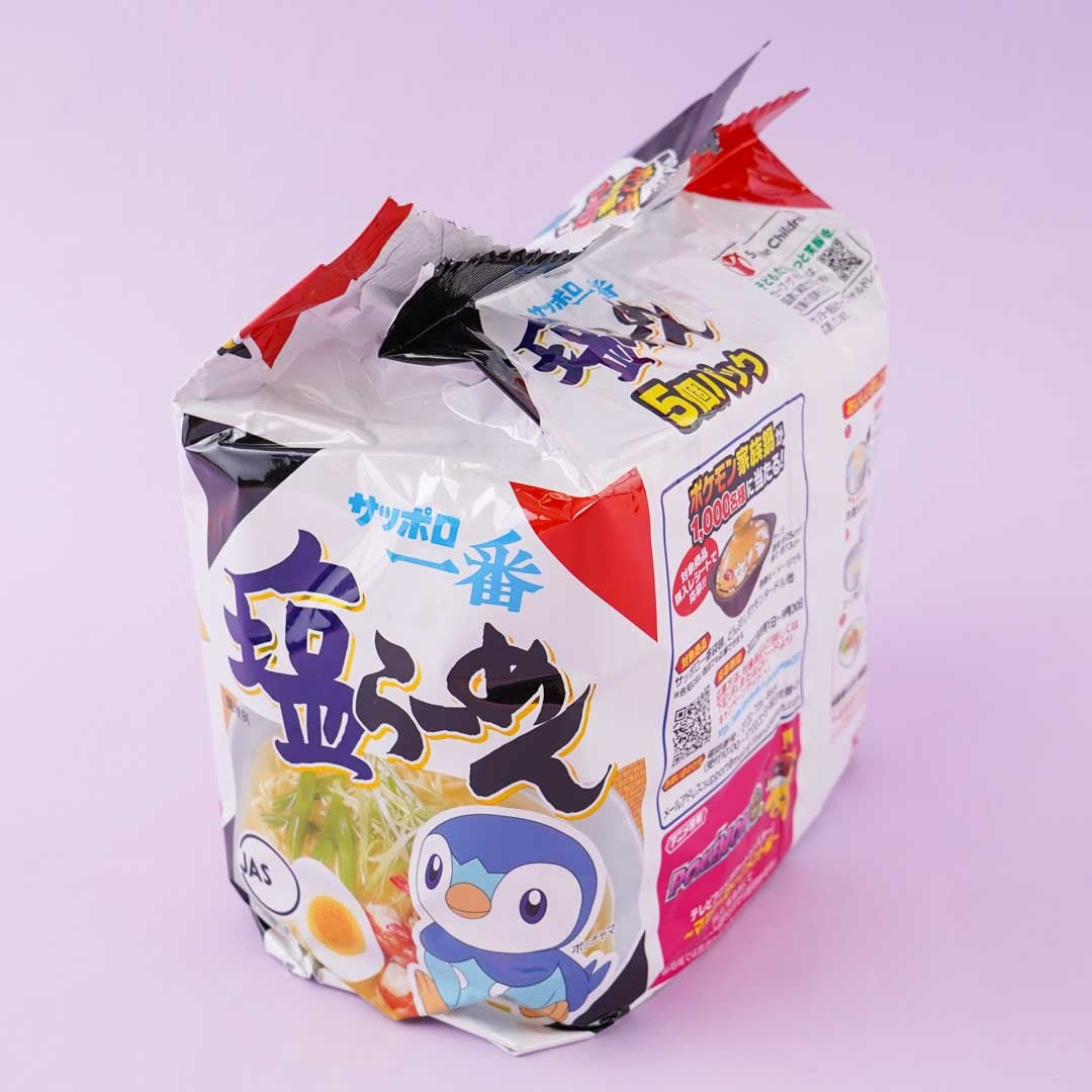• A pack of instant noodles illustrated with different Pokemon for making shio or salt ramen