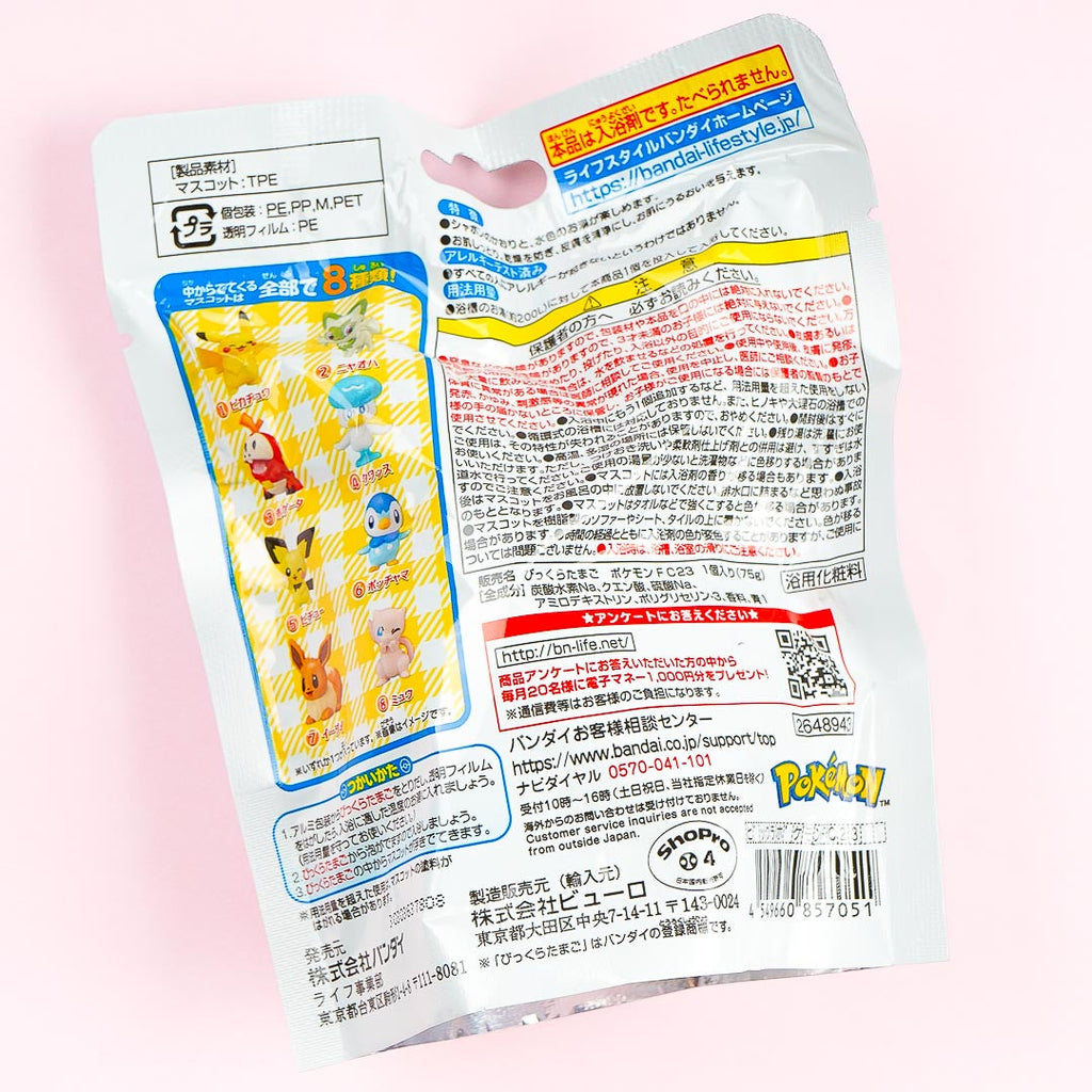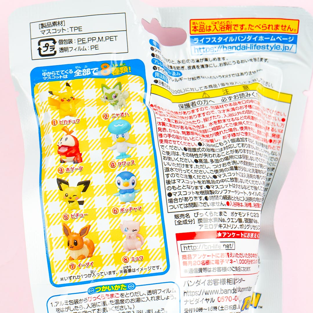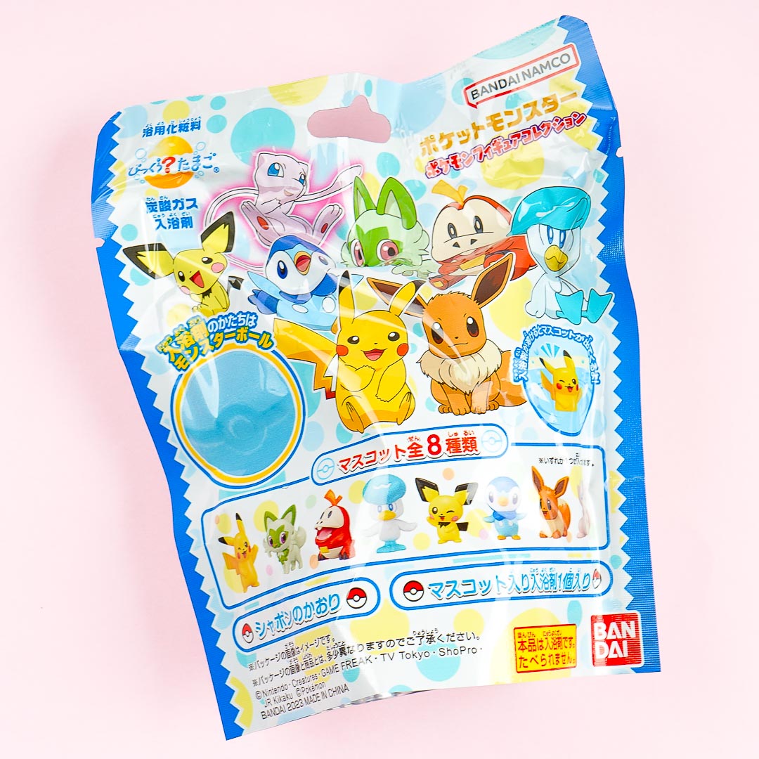 Enjoy bath time with this hypoallergenic and moisturizing bath ball! When the light blue fizzy salt melts, a surprise egg with a Pokemon toy will come out.