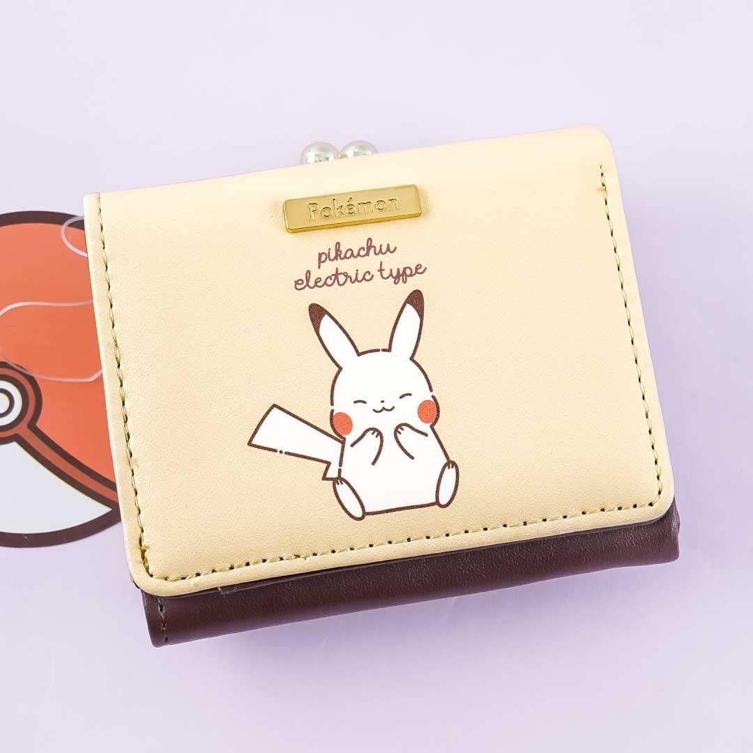 A kawaii synthetic leather trifold wallet featuring a print of Pikachu