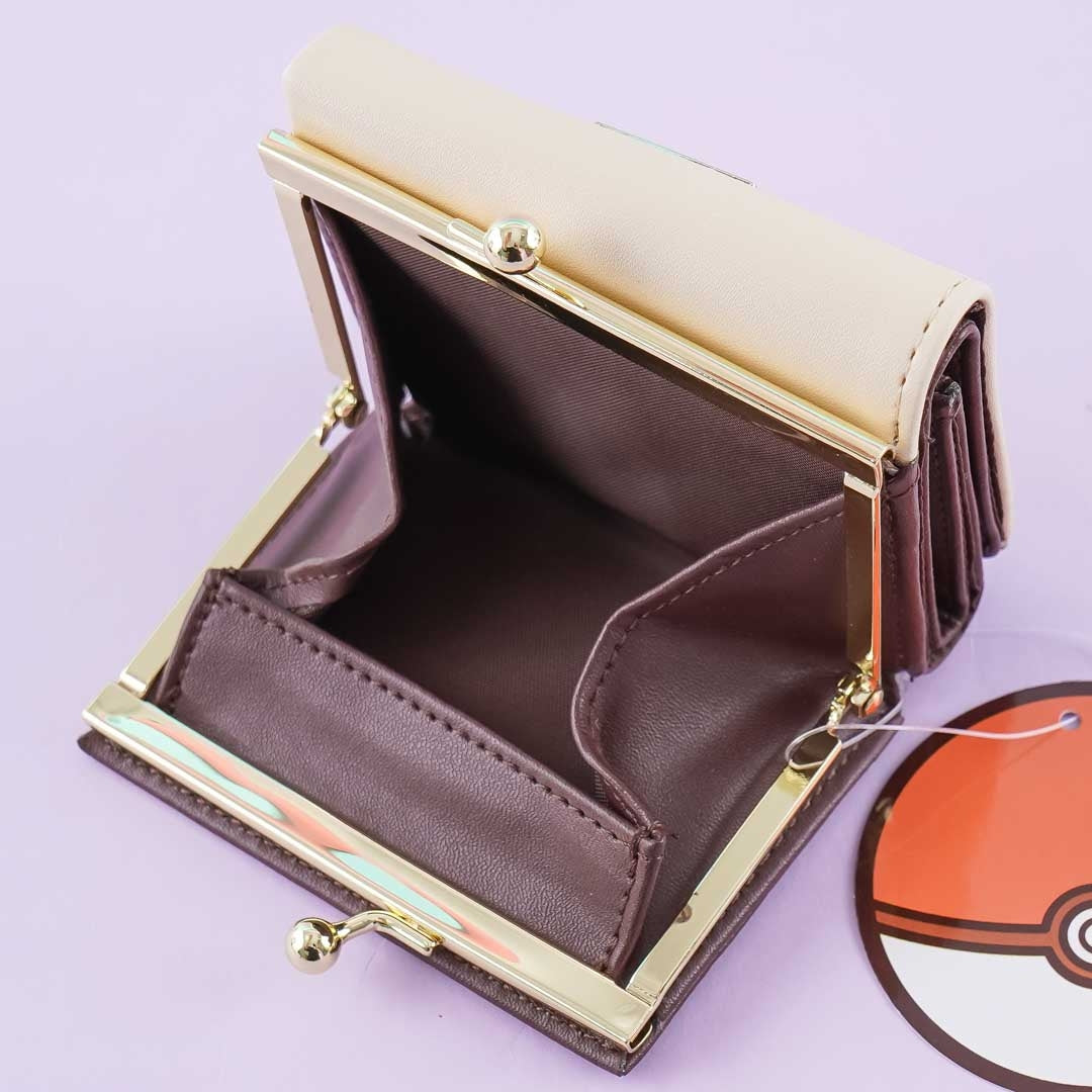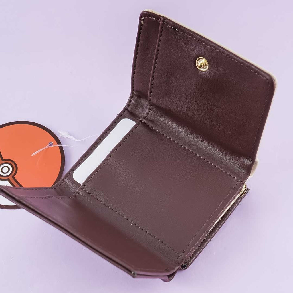 This super kawaii trifold wallet features a print of Pikachu! Use this synthetic leather wallet to organize your cash and cards. It has multiple card slots, a metal clasp coin compartment, a button closure, and golden details.