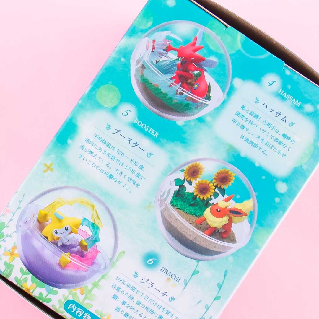 Collect all six miniatures to complete the full Pokemon terrarium! Re-Ment miniatures are popular keepsakes in Japan because of their cuteness and meticulous attention to detail. Each package comes blind-boxed so every order is a wonderful surprise!