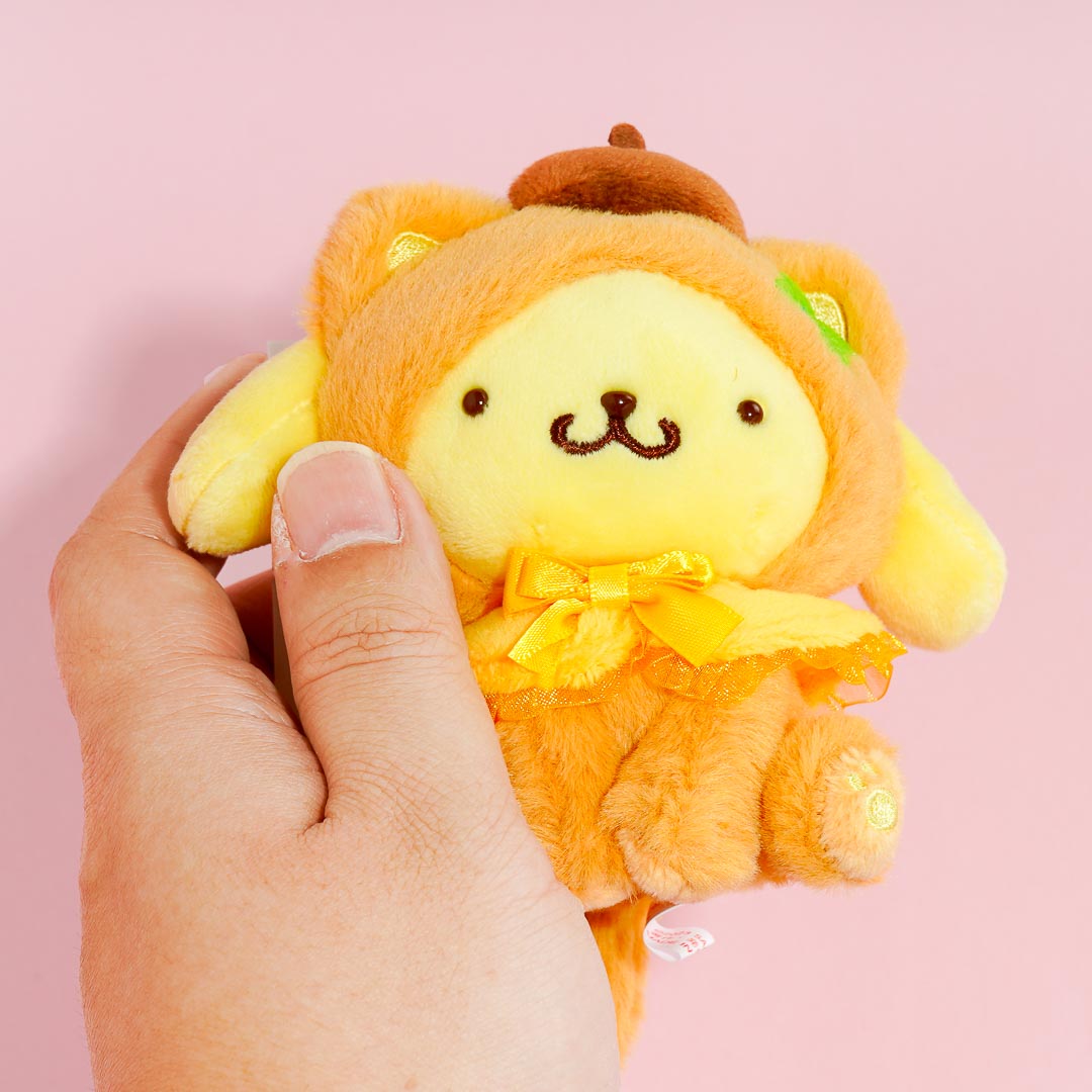 Jazz up your plain school or work bag by attaching this kawaii Pompompurin charm! This cute plushie is wearing a cat hood onesie that has lace decorations.