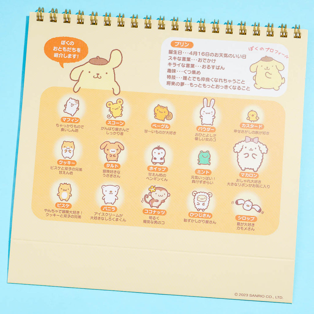 Mark important dates in this kawaii 2024 desk calendar! Each monthly page features a cute illustration of Pompompurin enjoying different things with his friends. Plus, there's a page at the back that lists the Pompompurin characters!