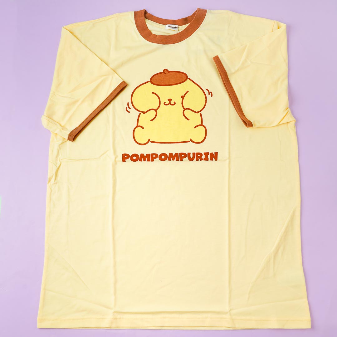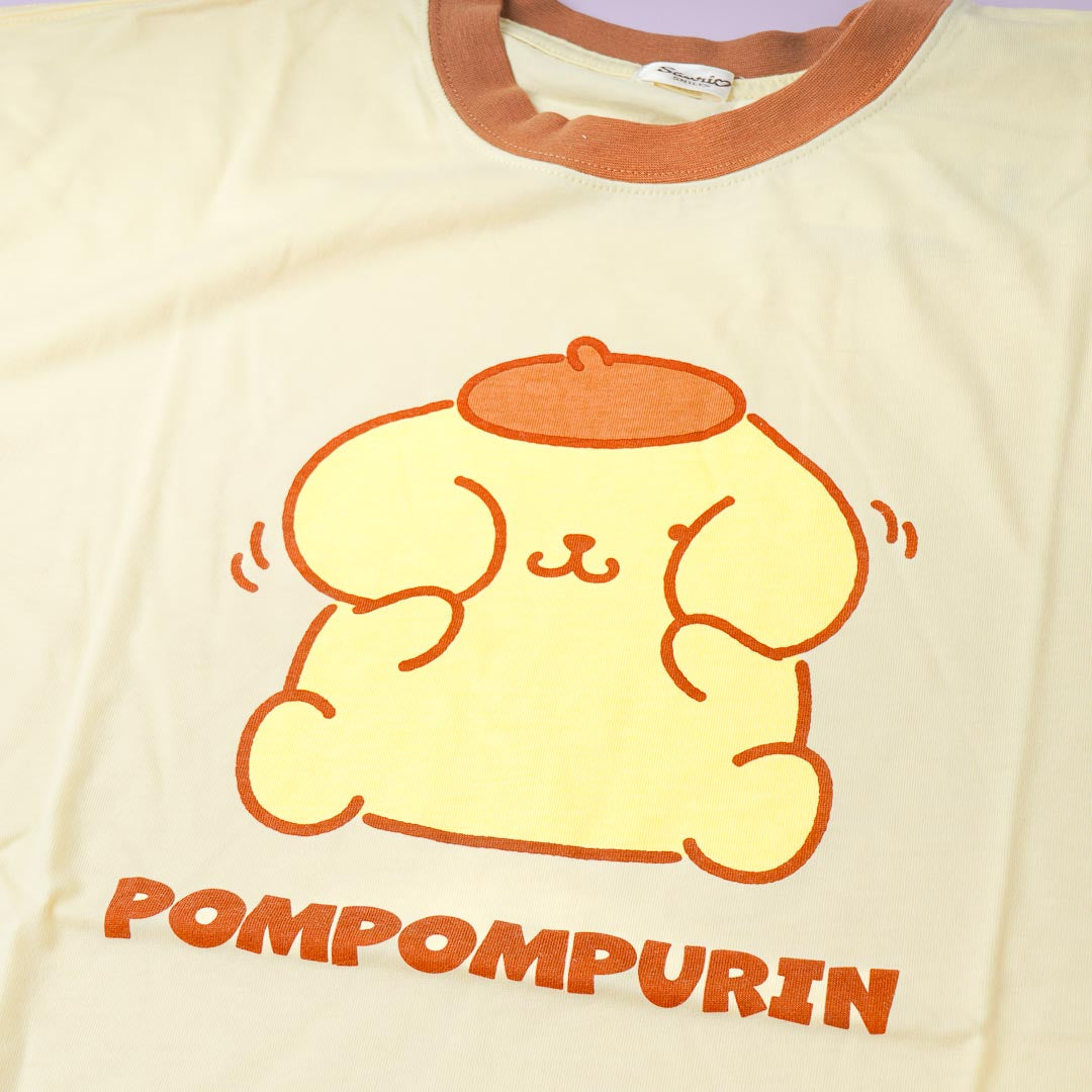 Express your love for Sanrio Characters by wearing this ringer shirt! The design features Pompompurin and a quote about his fun day with friends.