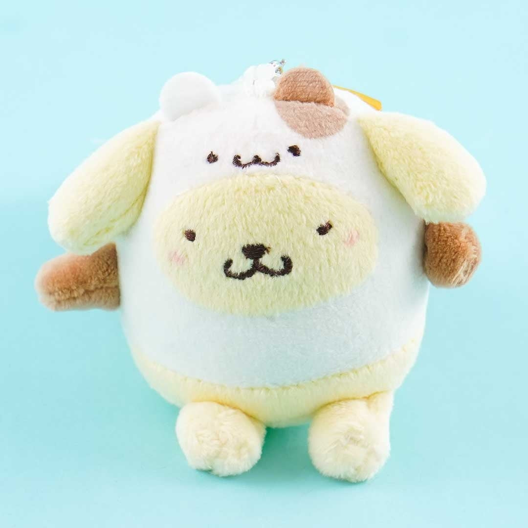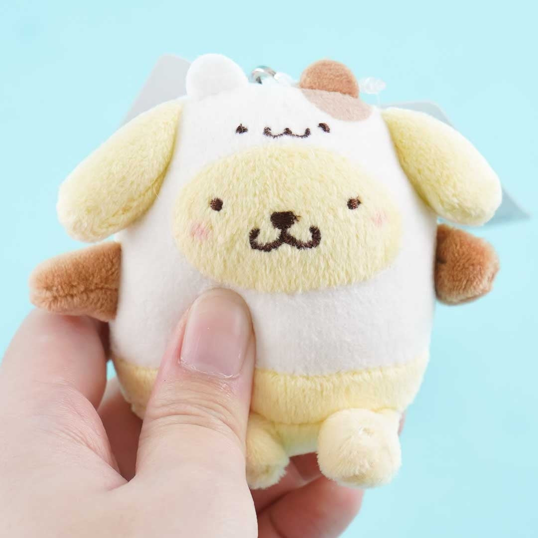 Pompompurin is wearing a Kigurumi or Japanese animal onesie that looks like itself. You can use it to kawaii-fy your backpack as this cute mini plushie also doubles as a bag charm. It comes with a carabiner, metal snap hook, keyring, and a name tag.